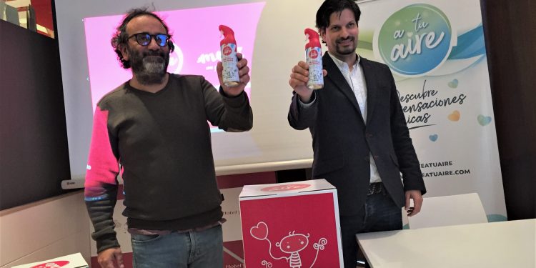 La presentación del ambientador ha contado con la participación de Marcos Estévez, director de la Fundación Igual Arte y responsable del proyecto MEMI, y Adrián Salgado, director de Marketing de Zelnova Zeltia.