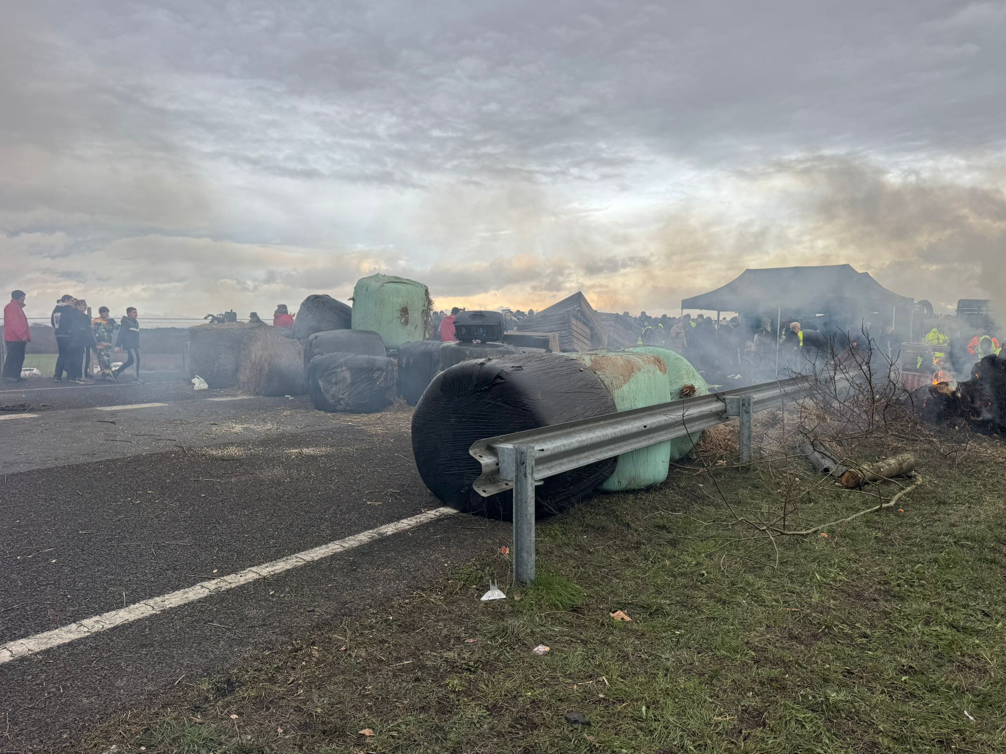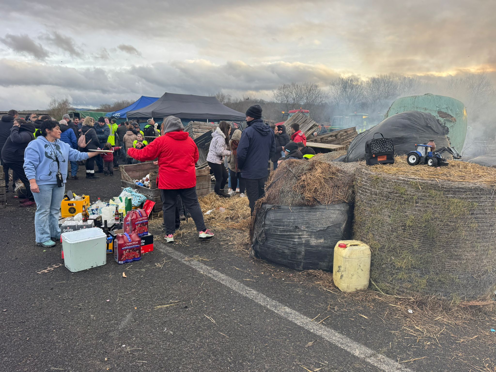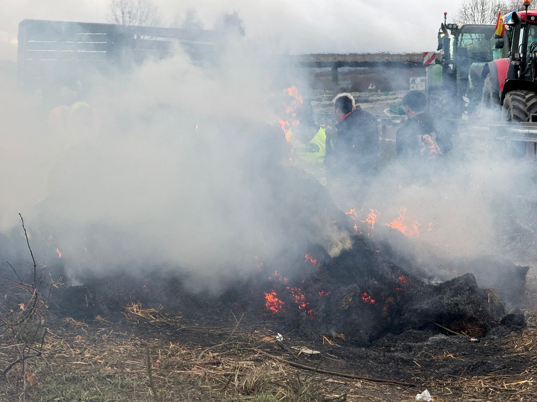 Tanto el sábado como el domingo, los participantes han quemado rulos de paja y neumáticos, todo ello en protesta por el acuerdo comercial entre la Unión Europea y Mercosur.