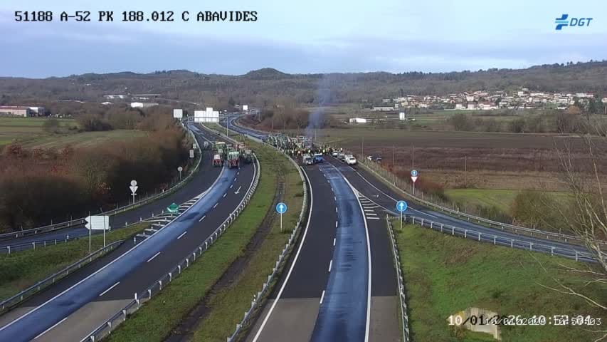 La Autovía Rías Baixas (A52) permanece cortada en ambos sentidos. El corte total de la carretera que une Vigo con la Meseta se prolonga ya más de 24 horas debido a una protesta. El problema se centra en la salida 188, a la altura de Ababides, en el municipio de Xinzo de Limia (Ourense).