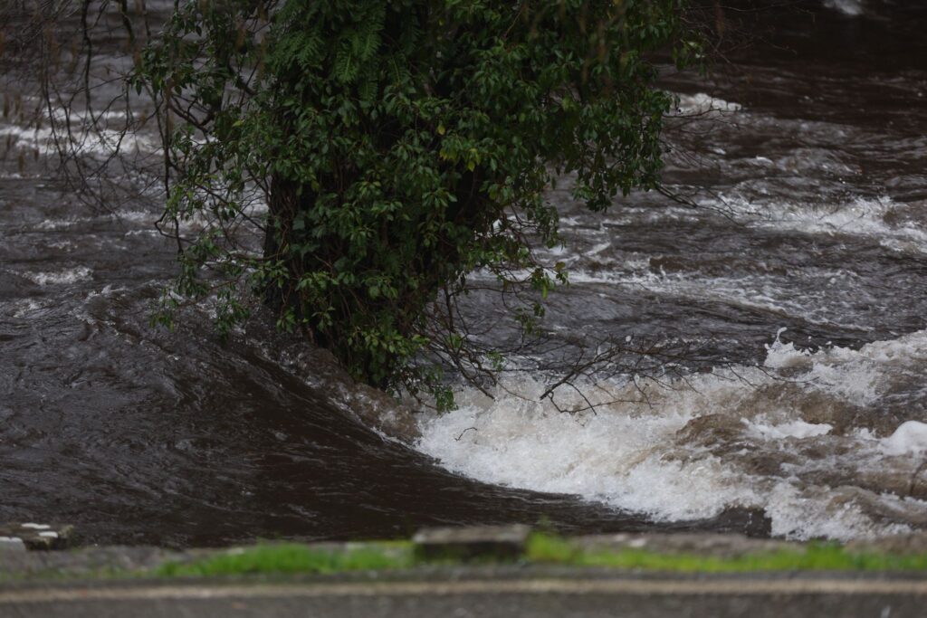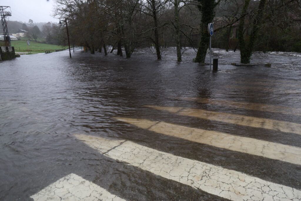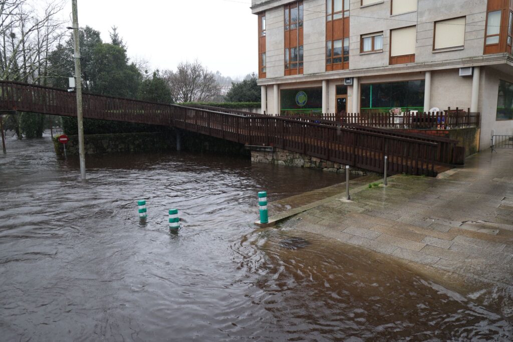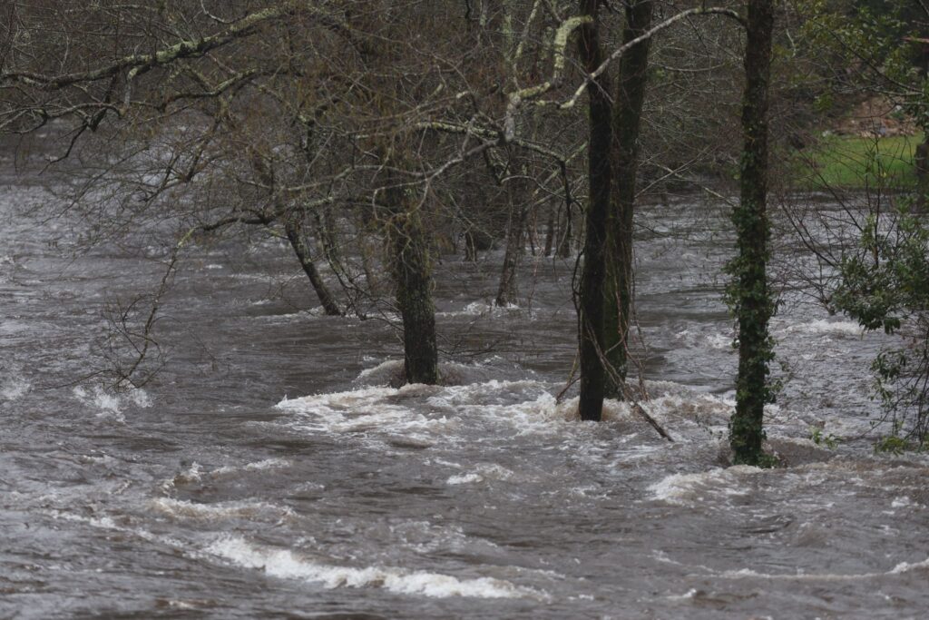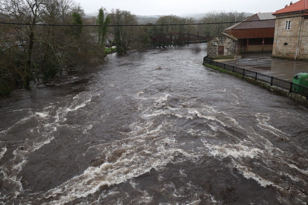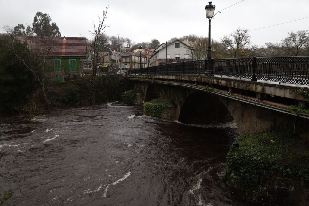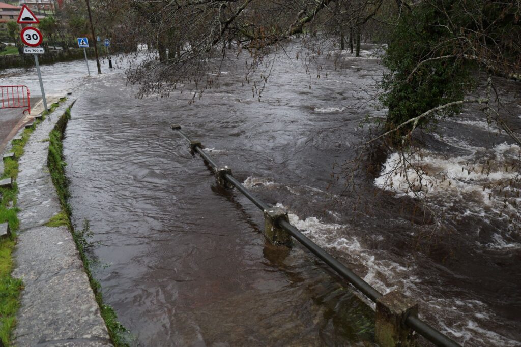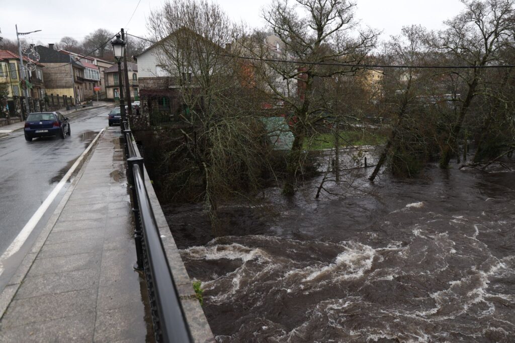 El municipio de Ponte Caldelas, que no está dentro de la alerta roja, vive una jornada de crecidas en el río Verdugo, con registros acumulados de lluvias que ya llegan a los 90,5 litros por metro cuadrado