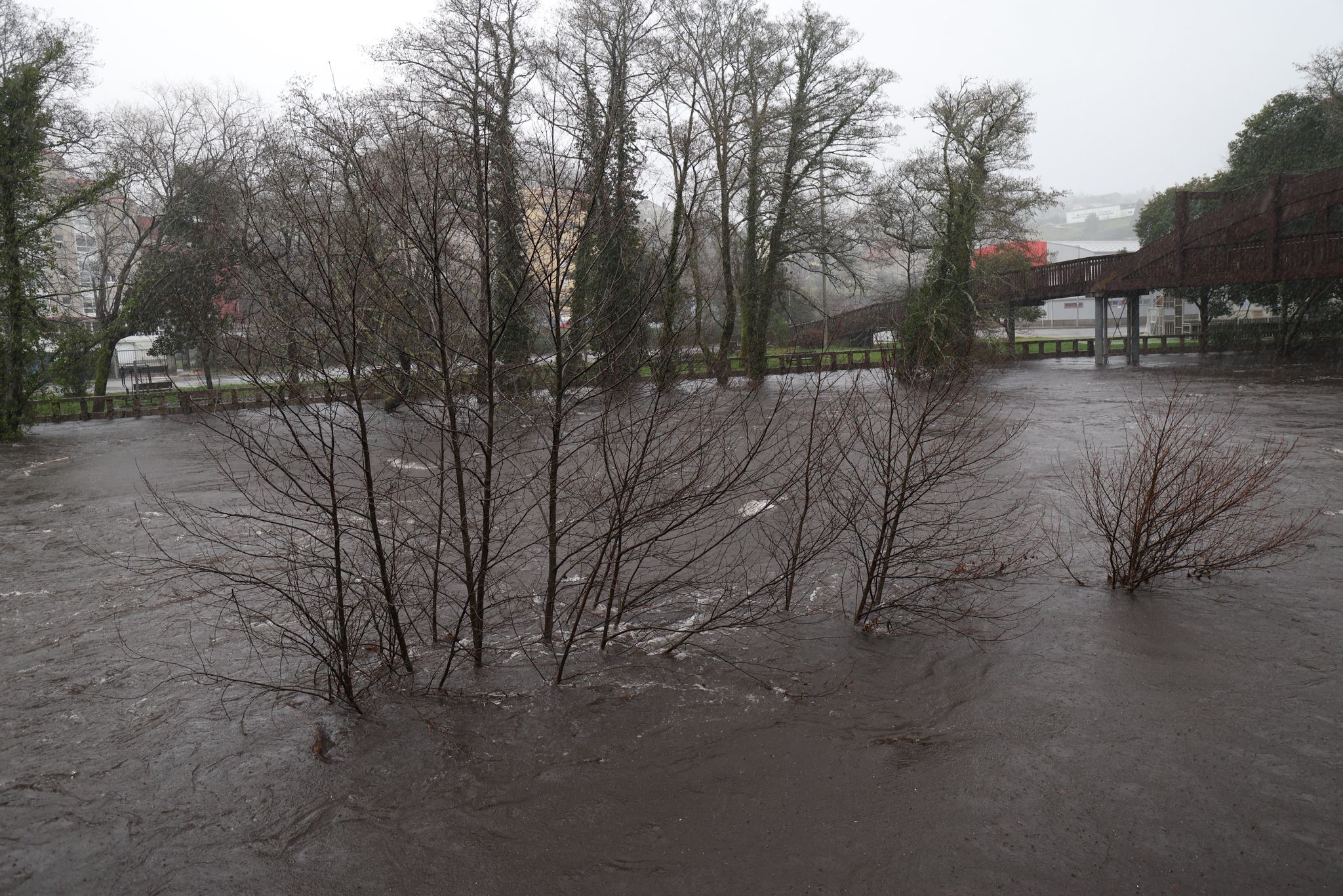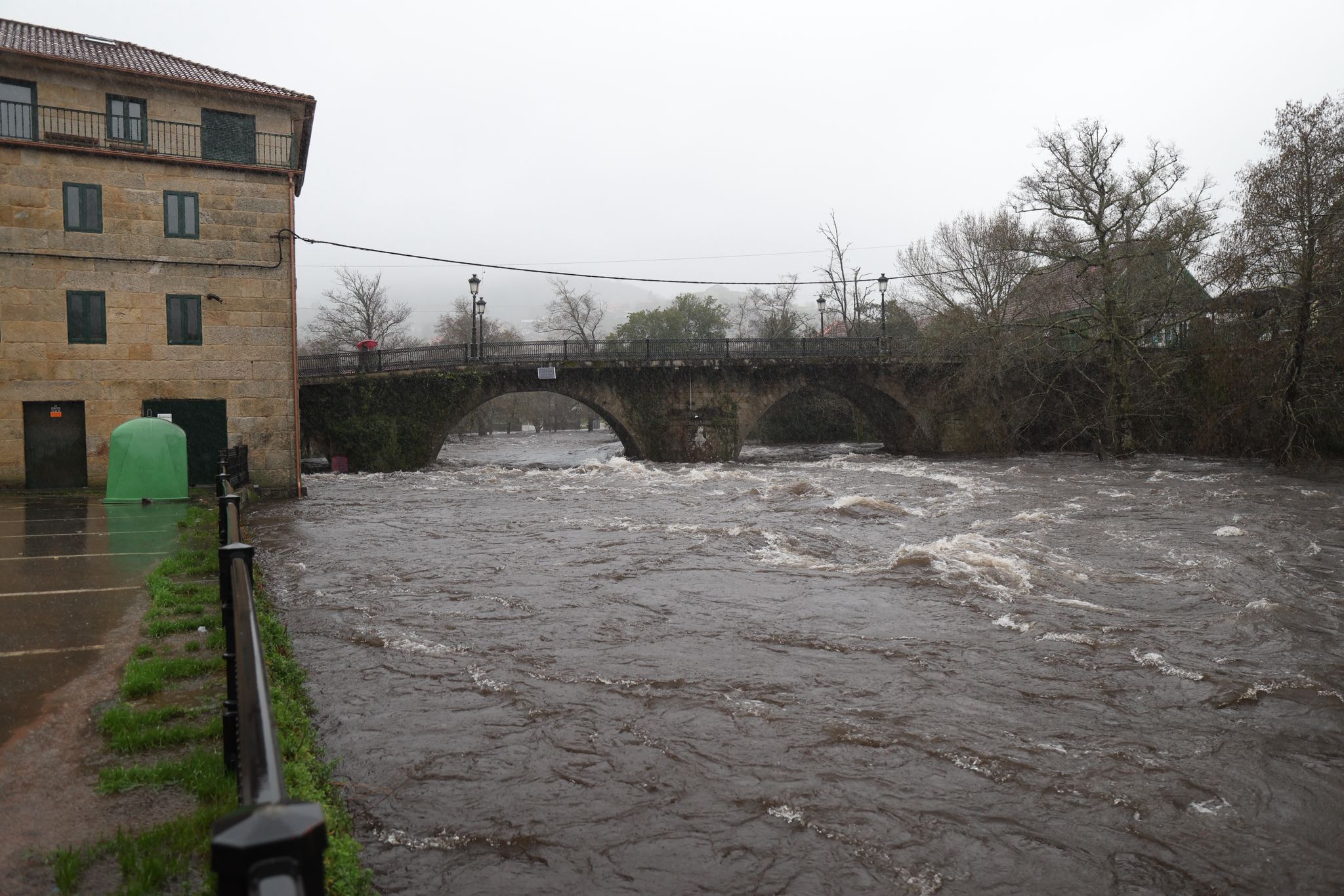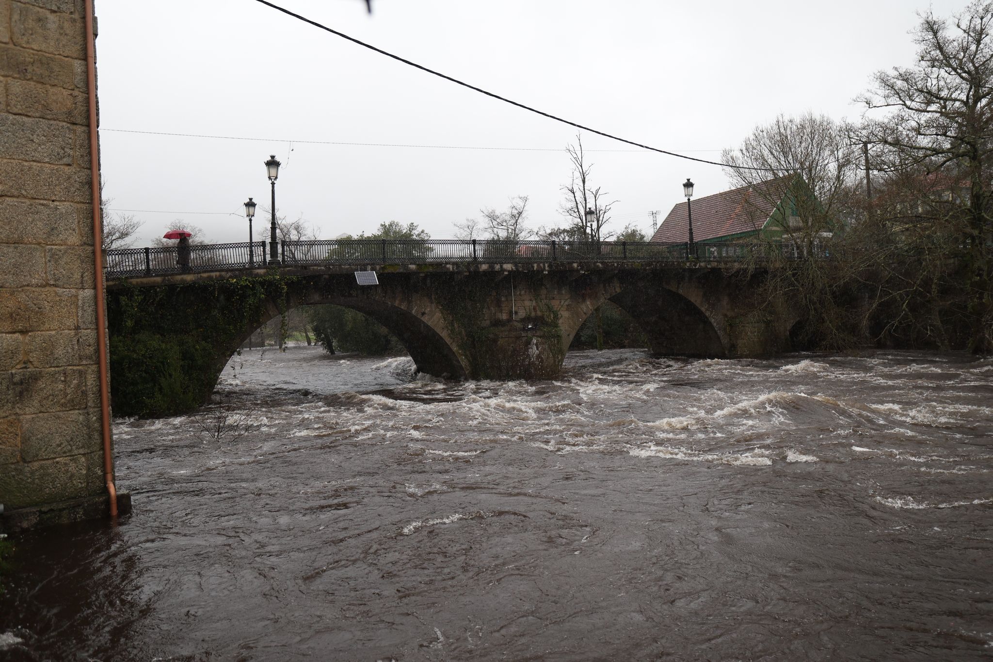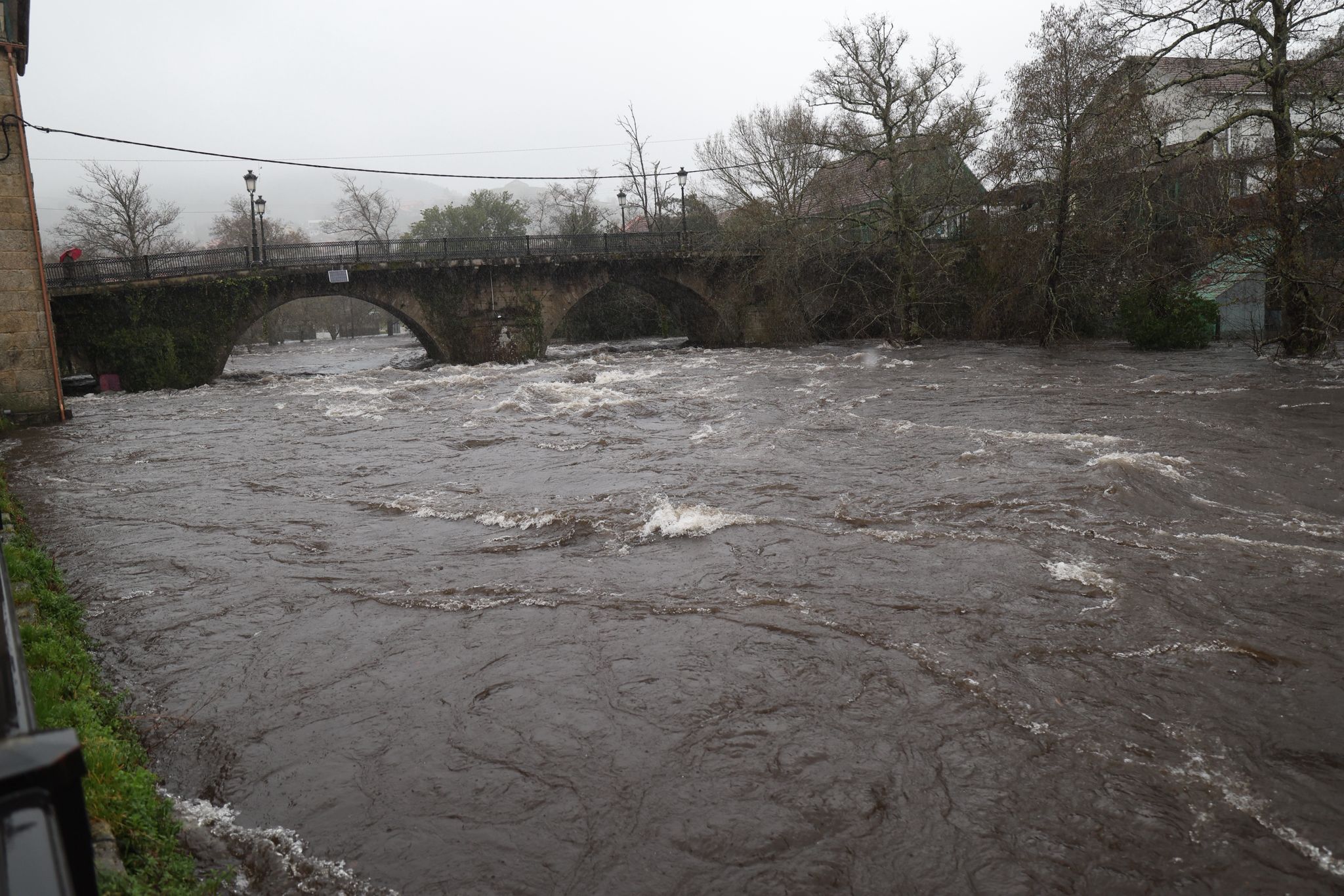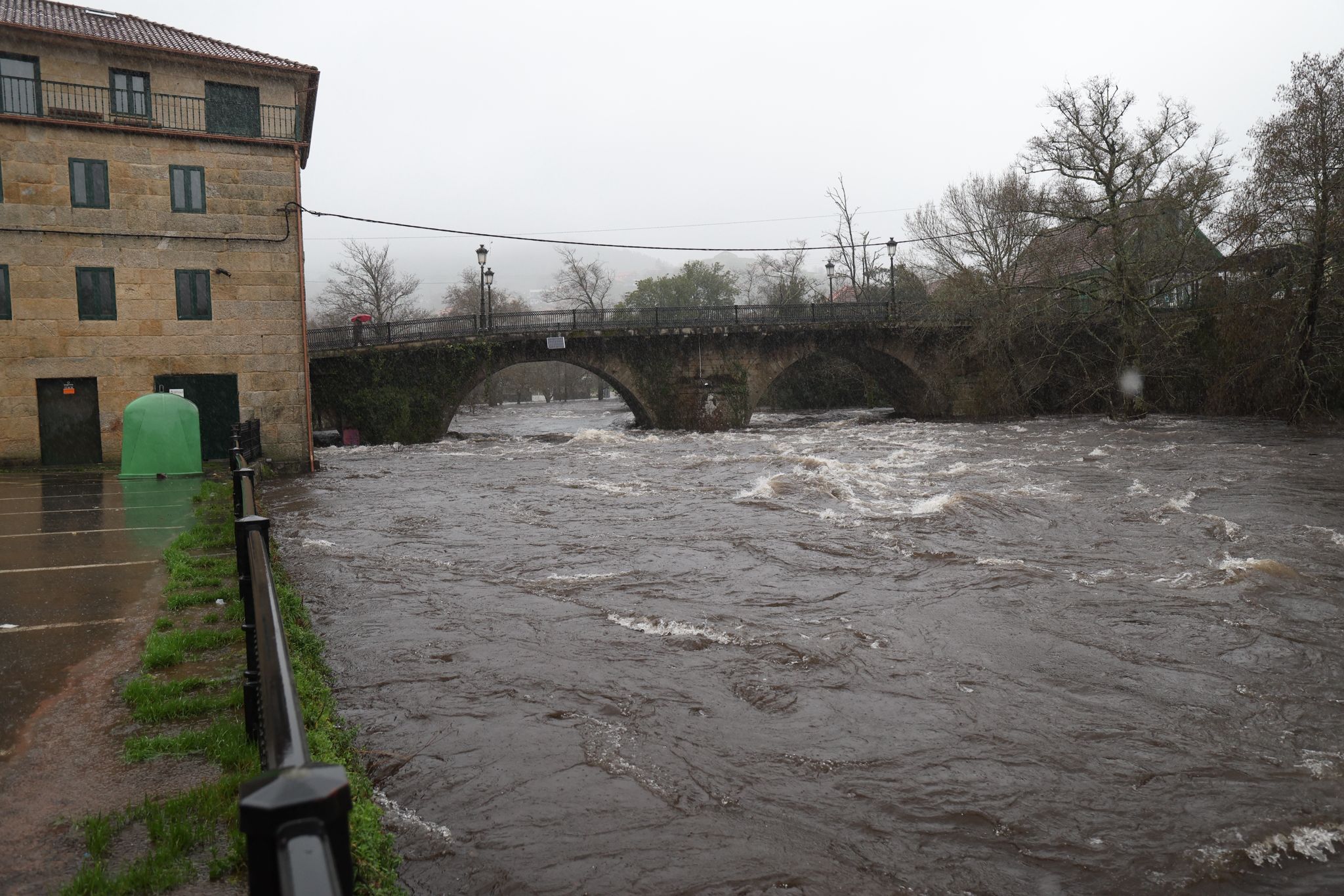 El municipio de Ponte Caldelas, que no está dentro de la alerta roja, vive una jornada de crecidas en el río Verdugo, con registros acumulados de lluvias que ya llegan a los 90,5 litros por metro cuadrado