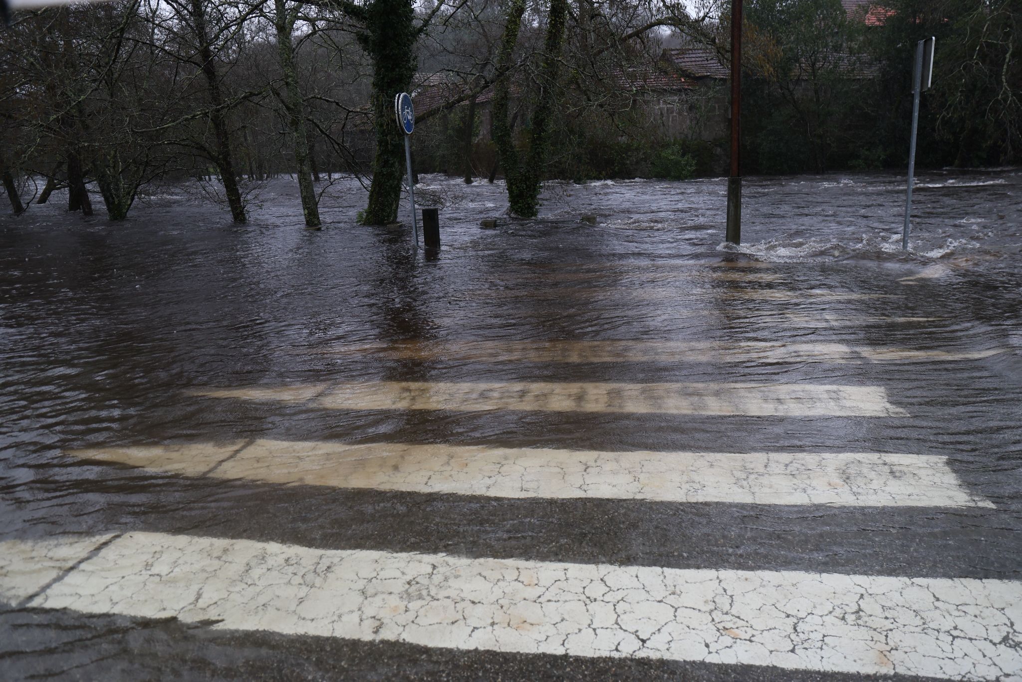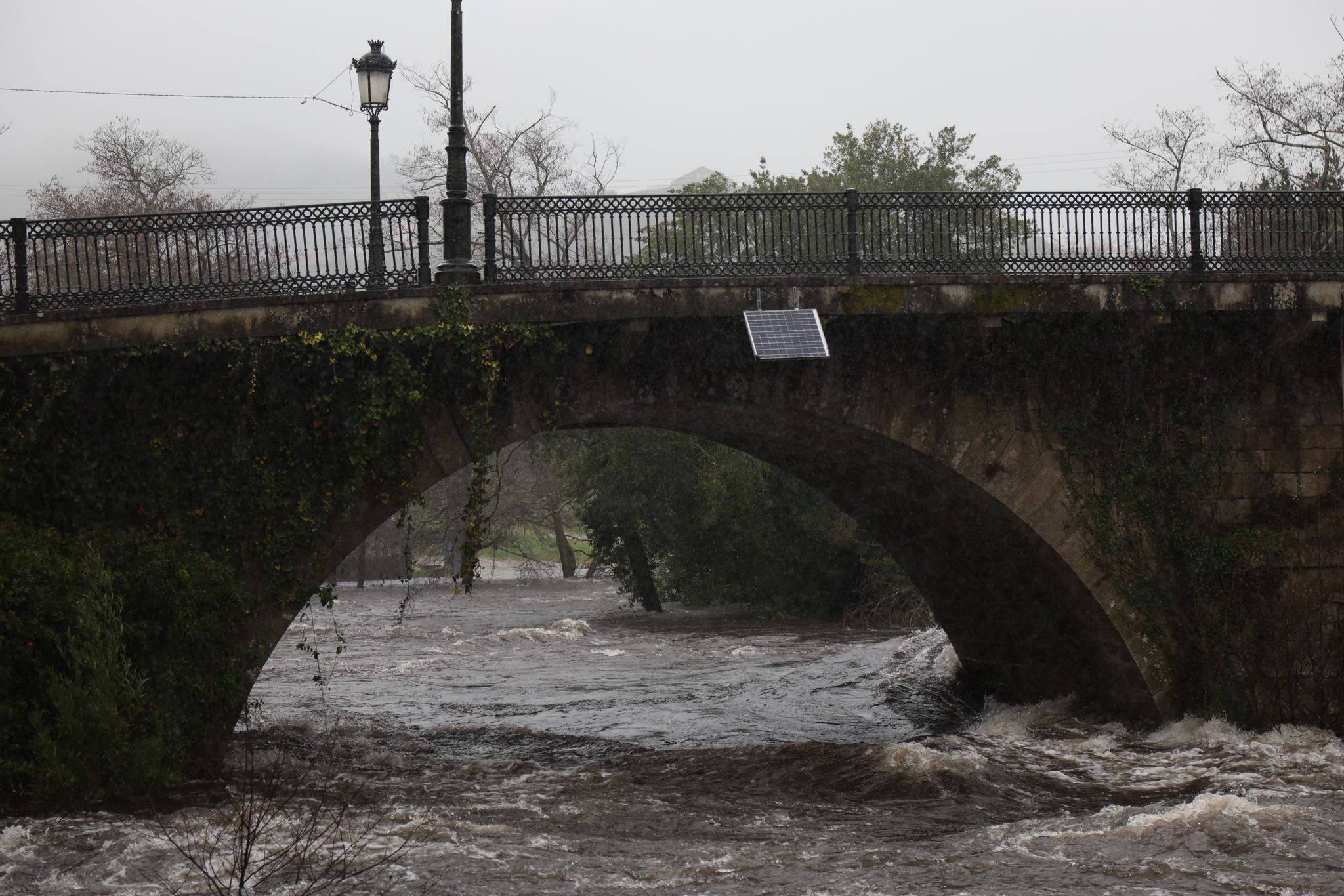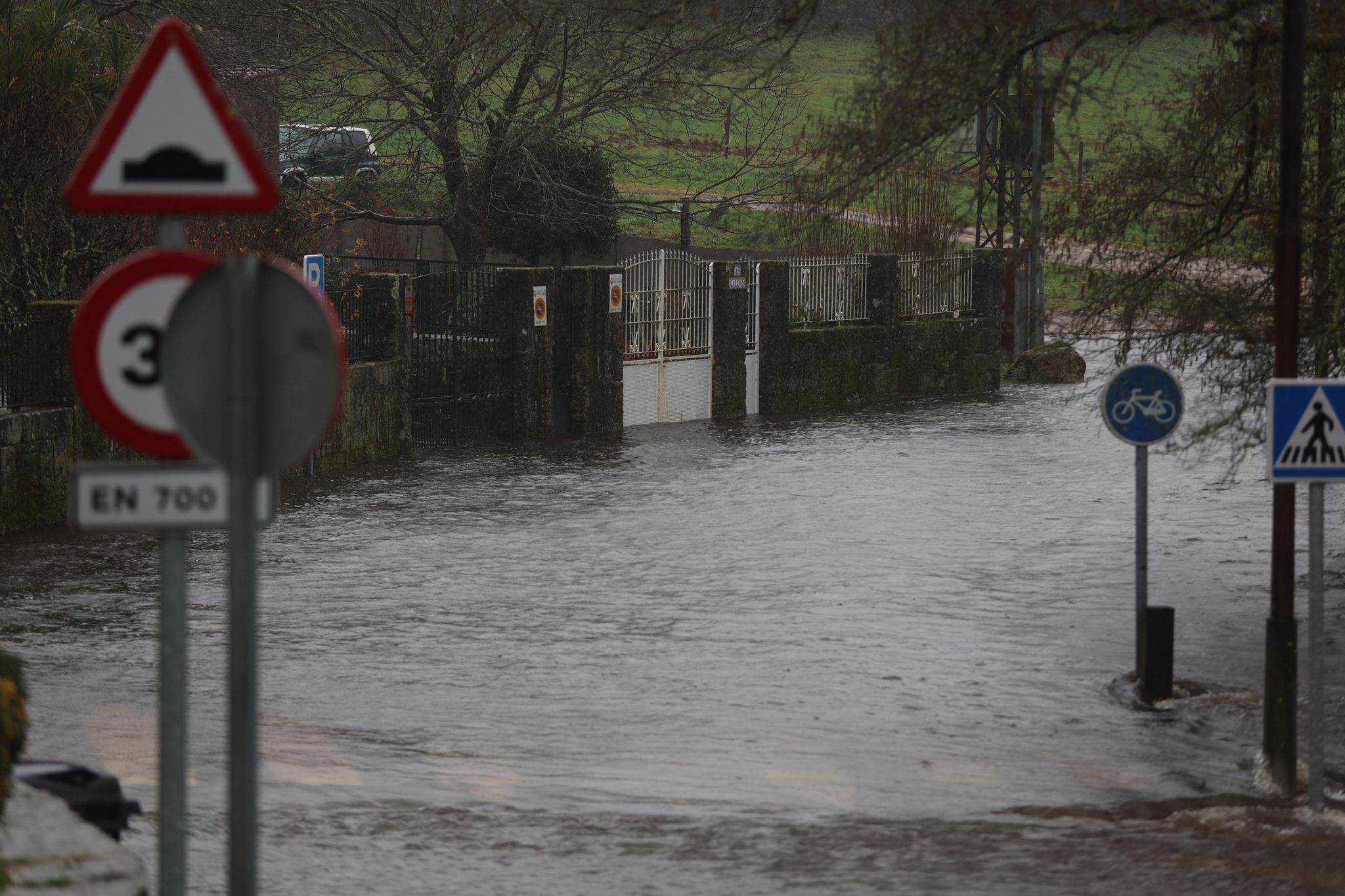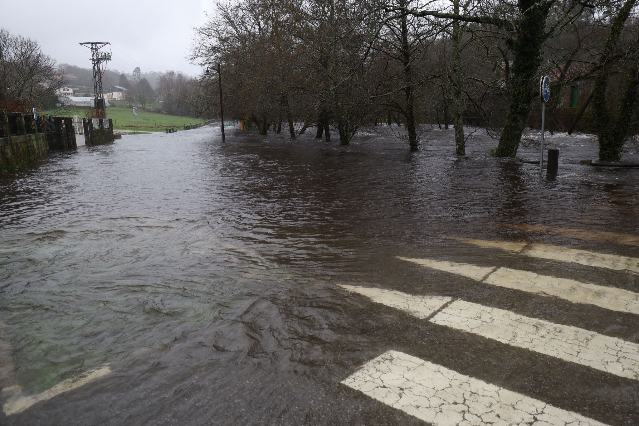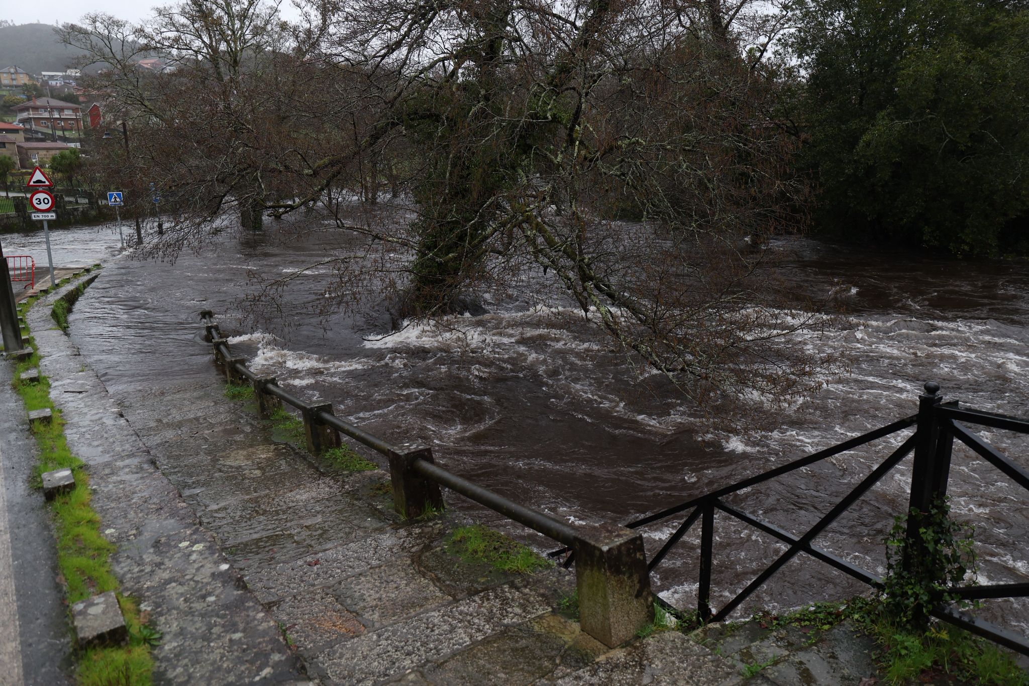 El municipio de Ponte Caldelas, que no está dentro de la alerta roja, vive una jornada de crecidas en el río Verdugo, con registros acumulados de lluvias que ya llegan a los 90,5 litros por metro cuadrado