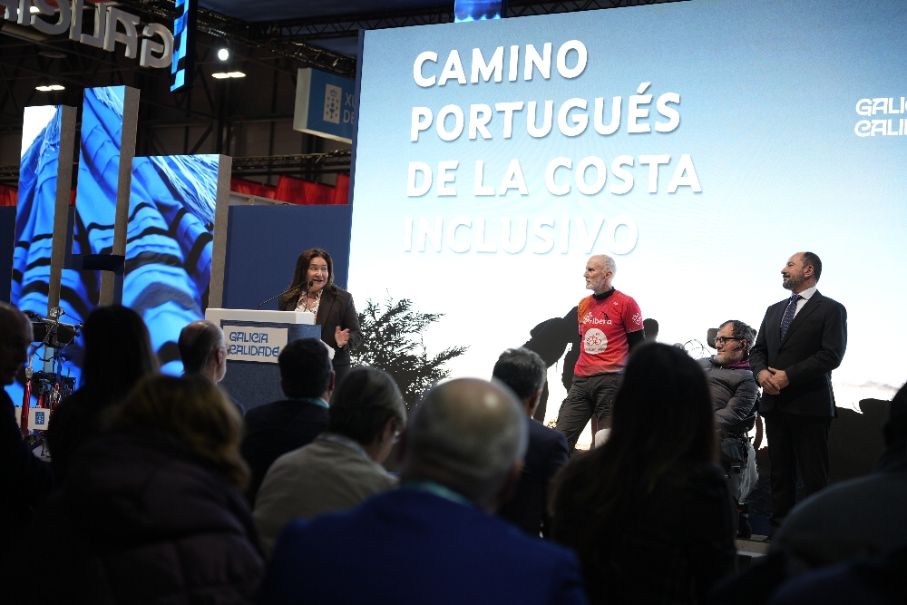 La fe y el esfuerzo que mueven a los peregrinos hacia Santiago de Compostela han encontrado en la Feria Internacional de Turismo (Fitur) un altavoz para su versión más humana y necesaria. La delegada territorial de la Xunta en Vigo, Ana Ortiz, y el director de Turismo de Galicia, Xosé Merelles, han presentado este miércoles en Madrid la programación de Discamino para el presente año. Bajo el marco del ‘Camiño Portugués da Costa Inclusivo’, la Administración autonómica ha querido poner en valor un proyecto que, desde 2009, trabaja para que la discapacidad no sea un impedimento para alcanzar la Plaza del Obradoiro.