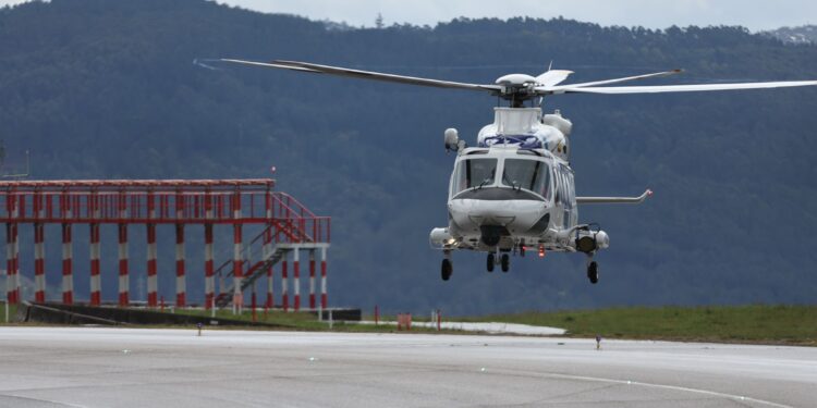 El helicóptero de Gardacostas de Galicia ‘Pesca I’, que la Xunta mandó a Valencia para participar en los operativos de búsqueda y rescate de personas en las zonas afectadas por la DANA, vuelve a Vigo tras efectuar dos vuelos.
