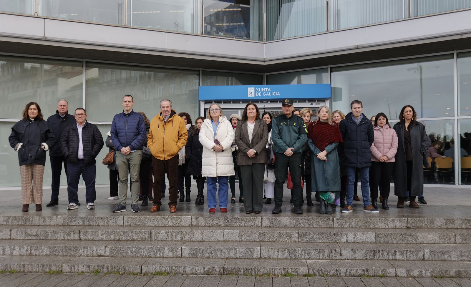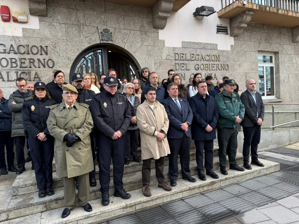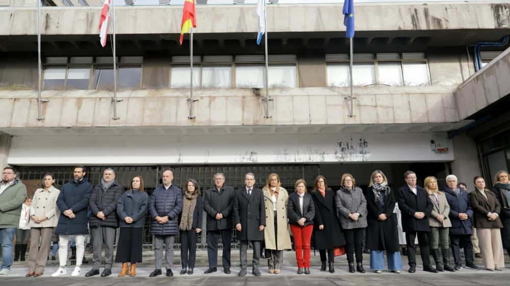 En San Caetano, la sede del Gobierno gallego, el presidente Alfonso Rueda ha presidido a las 12:00 horas el minuto de silencio acompañado de su equipo de gobierno y de trabajadores de la Administración autonómica, del mismo modo que se replicó en la Delegación Territorial de Vigo.