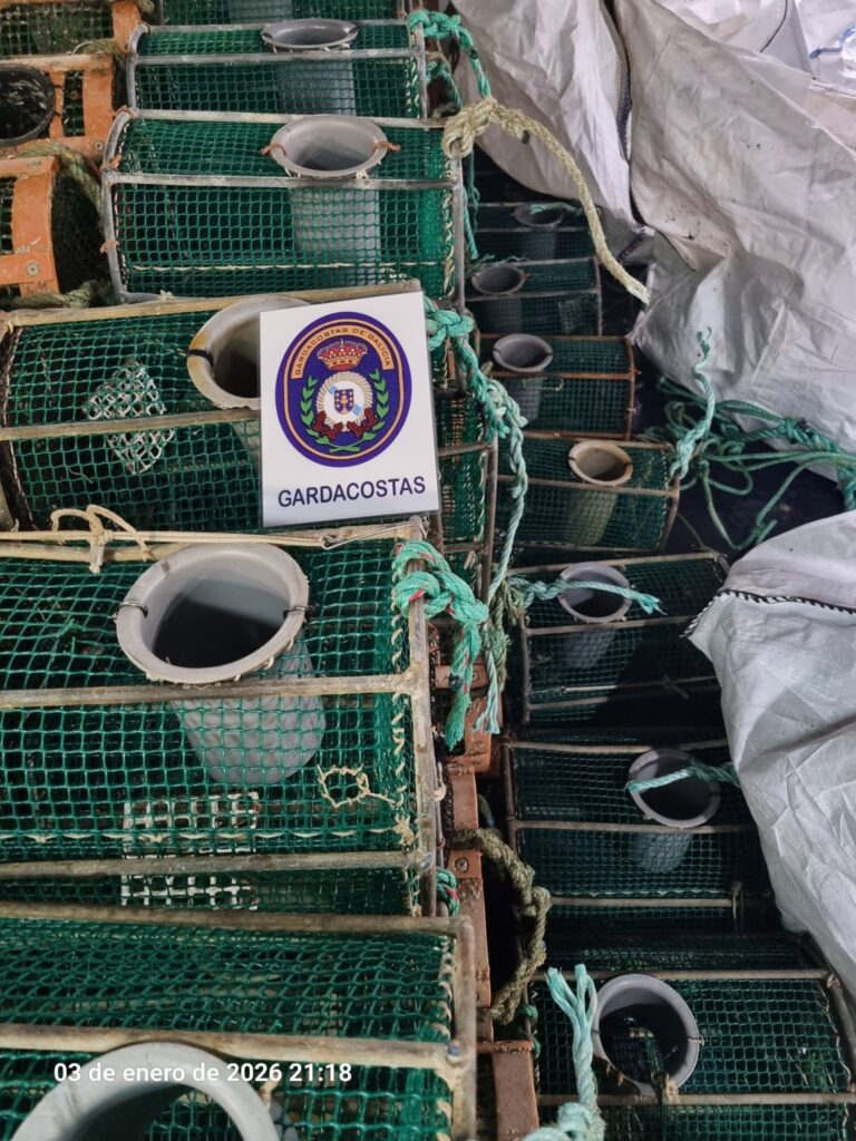 En concreto, se retiraron 16.769 nasas y 15.439 cacharros ilegales, así como más de 167.000 metros de artes de enmalle. Junto a las funciones de inspección y control, Gardacostas desempeñó también un papel en la defensa de la trazabilidad y de la seguridad alimentaria, actuando en coordinación con otros departamentos de la Xunta, con los servicios de salud pública y con las fuerzas y cuerpos de seguridad del Estado.