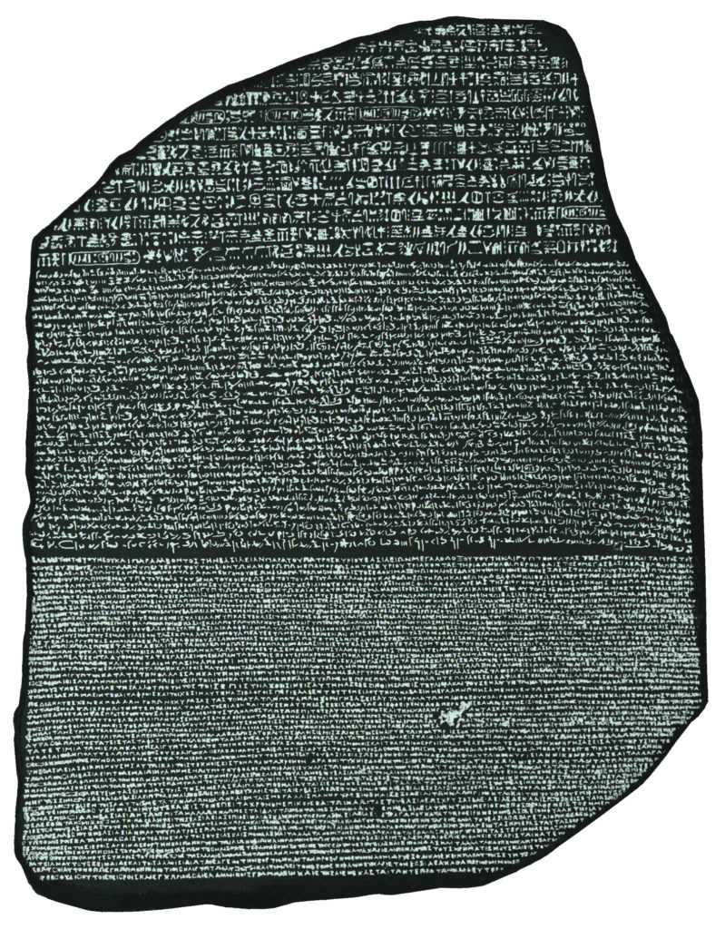 En 1801, el Ejército británico se apoderó de Egipto y también de la estela, que ya era conocida como la piedra de Rosetta. Esta viajó a Inglaterra y fue presentada al rey Jorge III, que ordenó que en adelante formase parte de la colección del Museo Británico, donde ha permanecido hasta hoy. Su contenido circuló de forma masiva entre los intelectuales de toda Europa, que se apresuraron a traducir el texto en griego y posteriormente el demótico. Thomas Young, de la Royal Society de Londres, y Jean–François Champollion, de la Universidad de Grenoble, resultaron decisivos en la interpretación de los jeroglíficos grabados en la piedra, lo que permitió crear una tabla de equivalencias de símbolos, que a la postre llevó a la comprensión de todos los jeroglíficos del Antiguo Egipto.