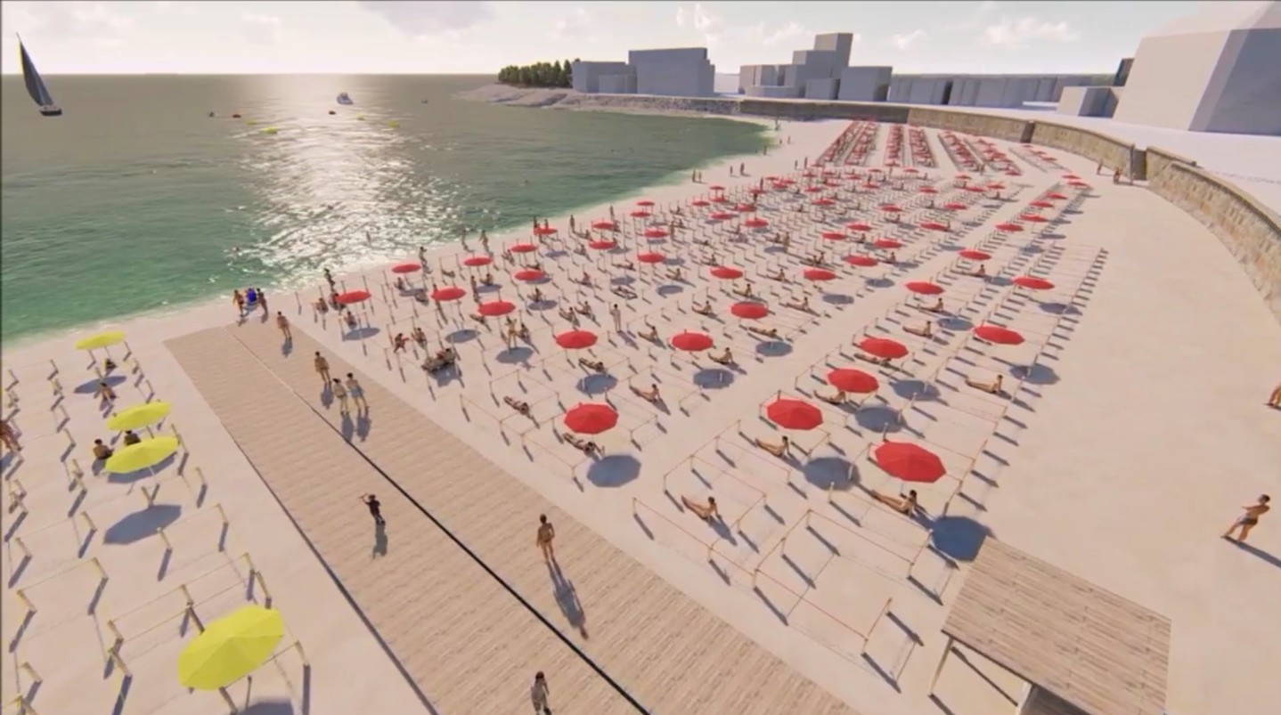 • Una franja entre el mar y la primera línea de cuadrículas que será una zona de paseo y juegos para niños. Tendrá un mínimo de 7 metros de ancho en la pleamar, superando los 30 metros con la marea baja.