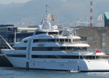 El megayate del propietario de la empresa alemana Würth amarra en Vigo