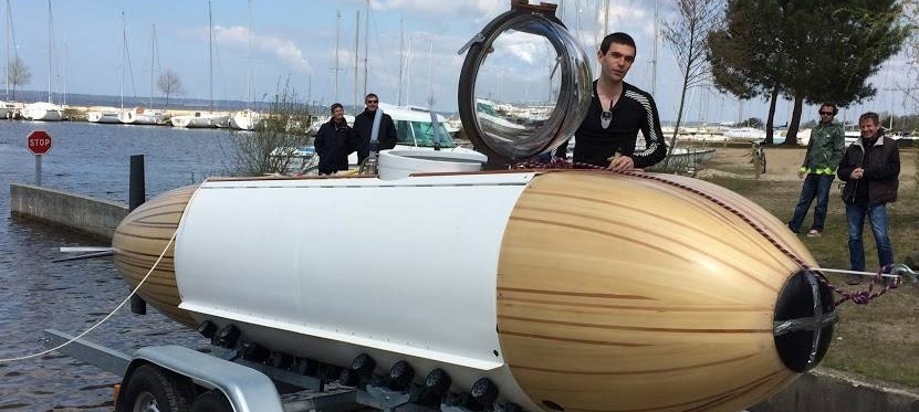 Un sueño de la infancia hecho realidad, es el proyecto que han puesto en marcha dos jóvenes ingenieros franceses al construir un mini submarino con propulsión a pedales con el que cruzarán el Canal de la Mancha en los próximos días. “Este sueño de la infancia nunca me abandonó…, este submarino no tiene equivalente en todo el mundo, aunque hace 200 años todos eran accionados manualmente, este es realmente especial. Que sepamos es el más pequeño, tiene seis metros de eslora, pesa tres toneladas, en su interior tan solo hay dos metros cúbicos de espacio para dos personas…”; comentó Antonie Delafargue.