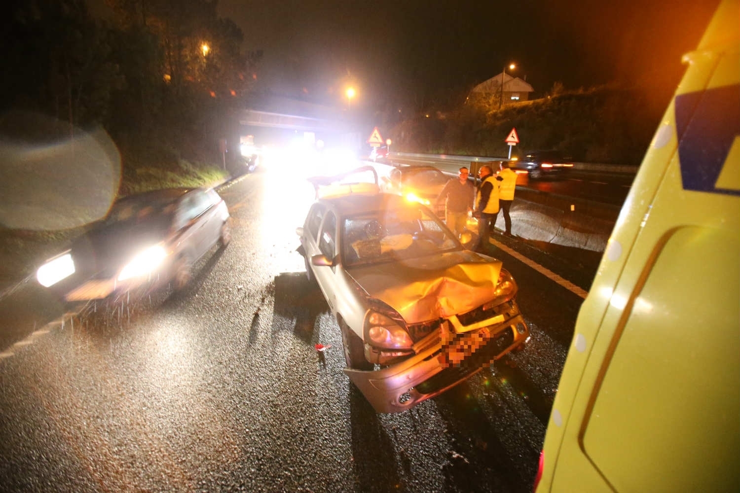 La autovía A55 (Vigo-Tui) no se libra y día tras día se convierte en el escenario de accidentes de tráfico. Este miércoles ocurrió de nuevo. No fue en Mos ni en O Porriño, como ocurre con mayor frecuencia, sino que está vez le tocó a Tui. Alrededor de las siete de la tarde cuatro turismo colisionaron en cadena en el punto kilométrico 26 de la A55, en sentido Vigo y a la altura de la entrada de la autopista, cuando por causas desconocidas se produjo un accidente en cadena. Dos de los ocupantes resultaron heridos y se registraron retenciones en la zona hasta la retirada de los turismmos implicados.
