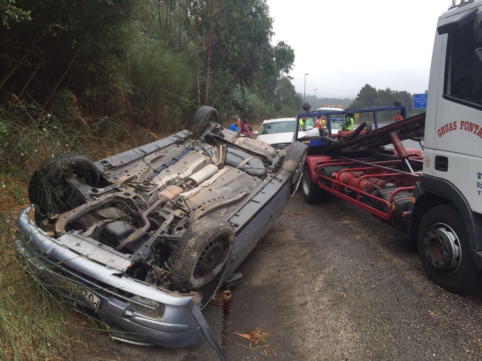 En la misma carretera, pero en sentido Vigo, también se produjo otro siniestro unos minutos después. En esta ocasión fue un Renault Clio el que salió de la vía a la altura del kilómetro 24 de la A55. No hubo que lamentar daños personales de gravedad.