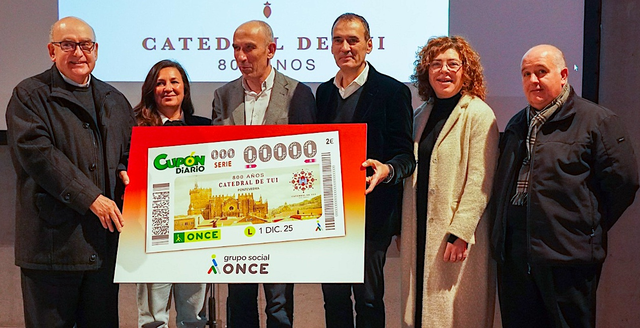 El cupón ha sido presentado esta mañana en Tui por el alcalde de Tui, Enrique Cabaleiro; el director de la ONCE en Vigo, Roberto Gaspar Conde; y el deán de la Catedral, José Diéguez Dieppa.
