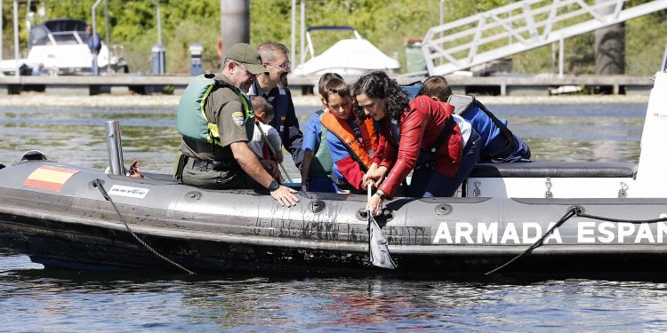 A solta de salmóns realizouse desde a Comandancia Naval de Tui e durante o proceso, os técnicos de Patrimonio Natural e os seus socios portugueses contaron coa colaboración das armadas de ambos países e dun grupo de escolares pertencentes a colexios de Tui e da localidade veciña de Valença do Minho.