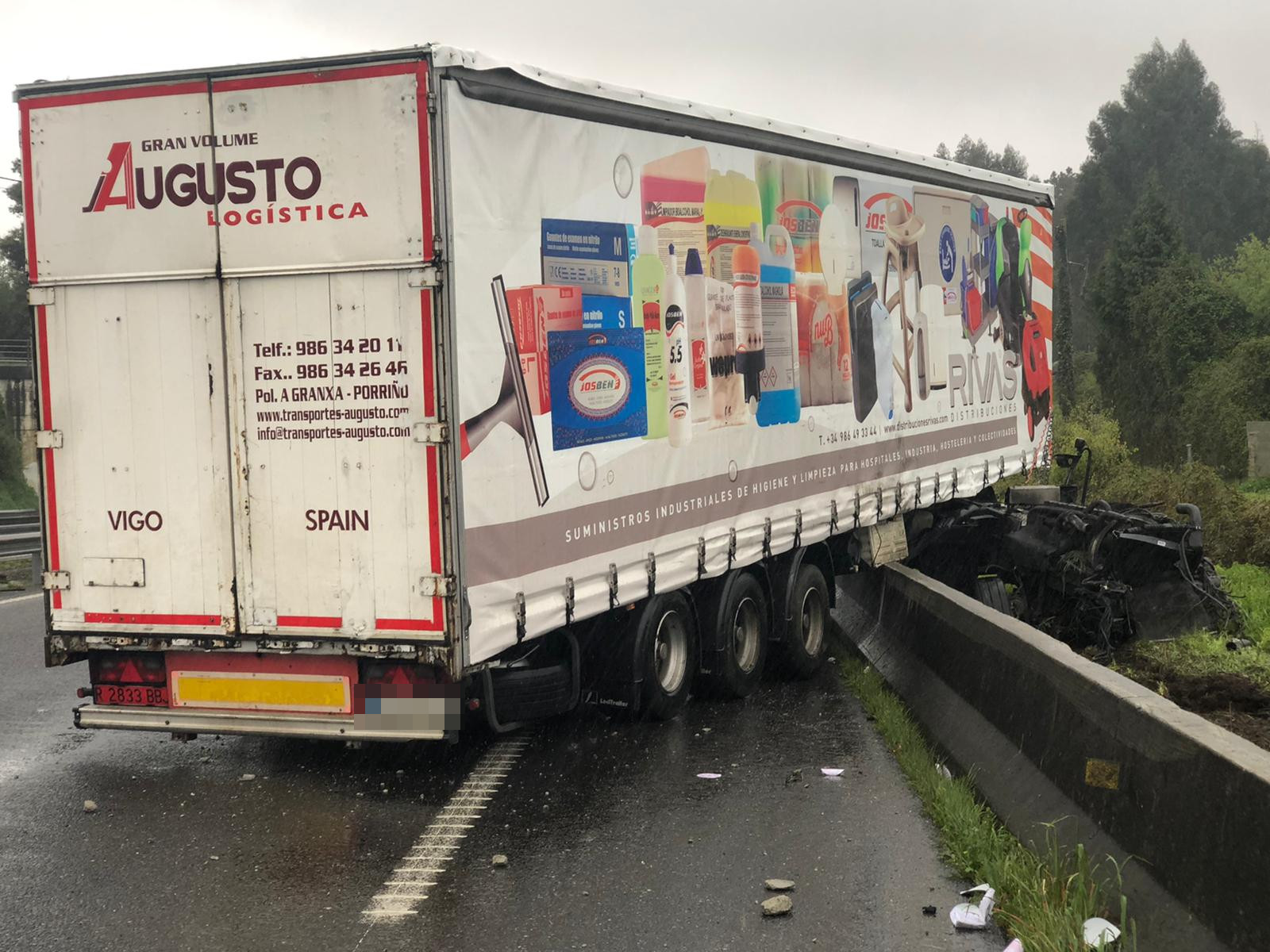 El conductor de un camión resultó herido en la mañana de este martes tras salirse de la vía mientras circulaba por la A-55, a su paso por el ayuntamiento de Tui y en dirección a Portugal, a la altura del punto kilométrico 30.