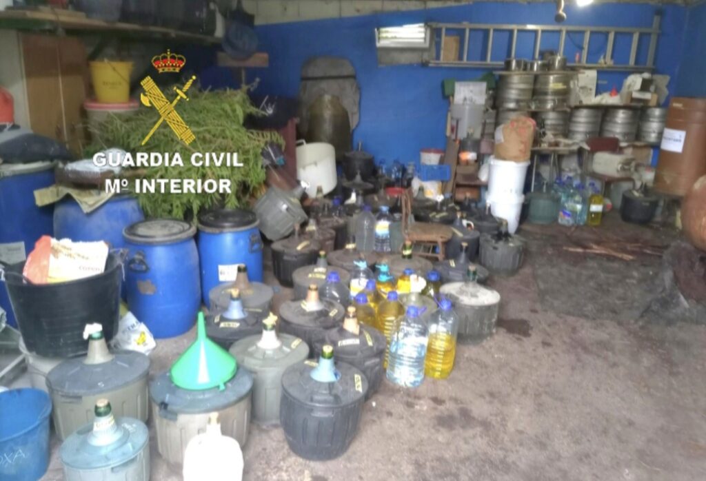 Según señala el Instituto Armado, la incautación se produjo el pasado lunes cuando, tras tener conocimiento de la existencia de un local de destilación de alcohol, procedieron a la inspección del lugar, donde comprobaron que había un galpón «habilitado como fábrica de alcohol«, según explican desde la Guardia Civil, que carecía de la preceptiva autorización.