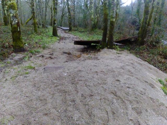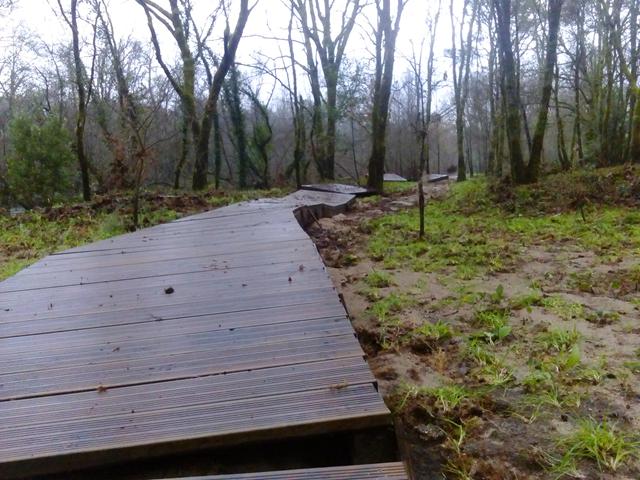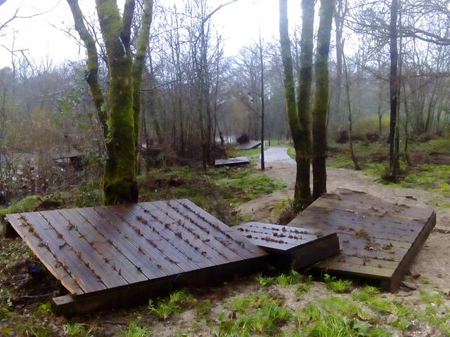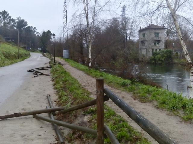 Entre tódolas consecuencias, o danos máis espectaculares están nos metros anteriores ó quilómetro cinco da senda do Tea, onde están situados os restos da ponte romana. Uns pasos antes, nun illote no curso de auga, atópanse tres anacos da pasarela. Máis adiante, está o lugar orixinario da madeira e ata media ducia de anacos máis. Nese punto tamén se atopa completamente arrasado o lugar porque o auga saíuse nunha curva do río e cubriu toda a zona, unha das máis baixas na beira do curso fluvial. De feito, o corredor de madeira foi posto para facilitar o paso os sendeiristas nun lugar no que se formaba un lameiro. Tras comprobar o traballo do auga, non parece a mellor medida.