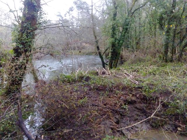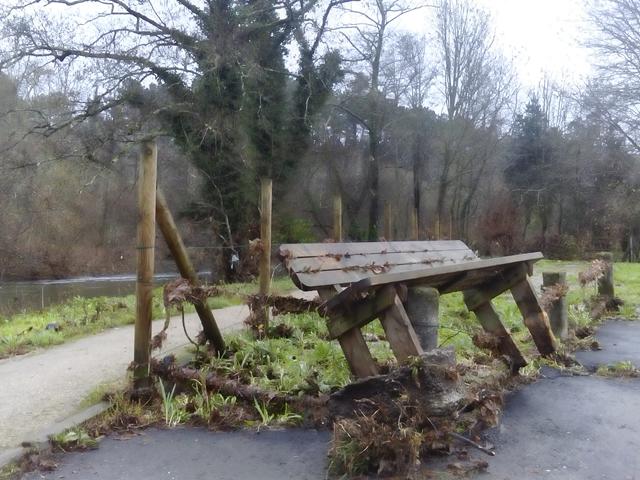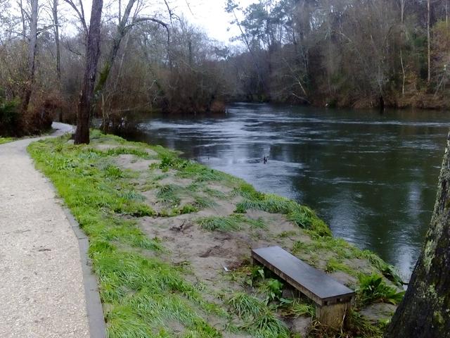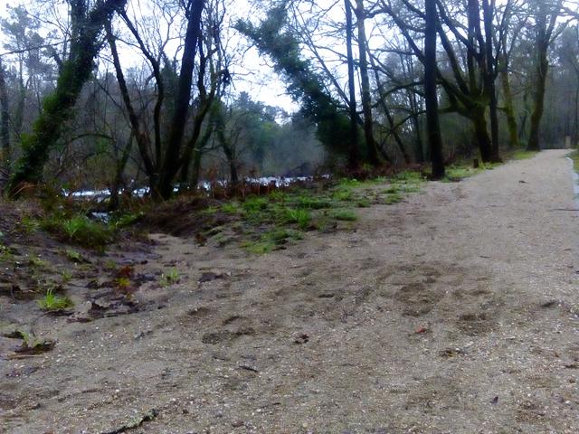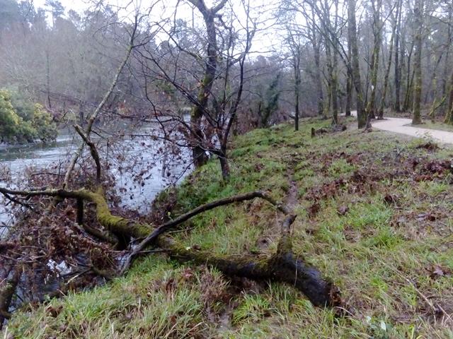 Seguindo a senda, en Ribadetea, tamén nun lugar no que a estrada está ó lado do río pódese observar un banco arrincado e que acabou nun rede de arame. Na mesma zona, aparecen deteriorados o camiño e un muro de contención. Máis adiante, a partir do terceiro quilómetro sucédense varios tramos onde a senda de terra sufriu numerosos buratos. Tamén son visibles os restos de árbores arrastrados pola corrente. Outro aspecto que desperta interese é comprobar a altura que alcanzou o auga nos diversos puntos, que foi moi alto.