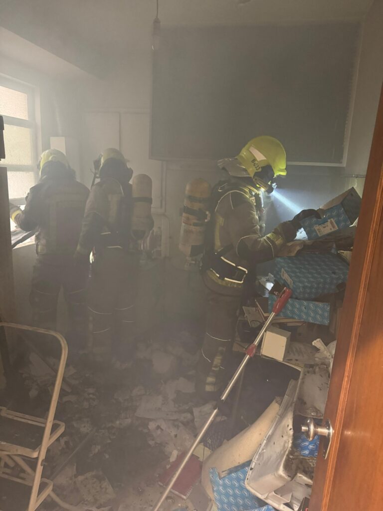 Según informa el 112, los daños materiales fueron pocos –apenas unos papeles que ardieron- pero provocaron quemaduras y dificultades respiratorias al propietario de las oficinas.
