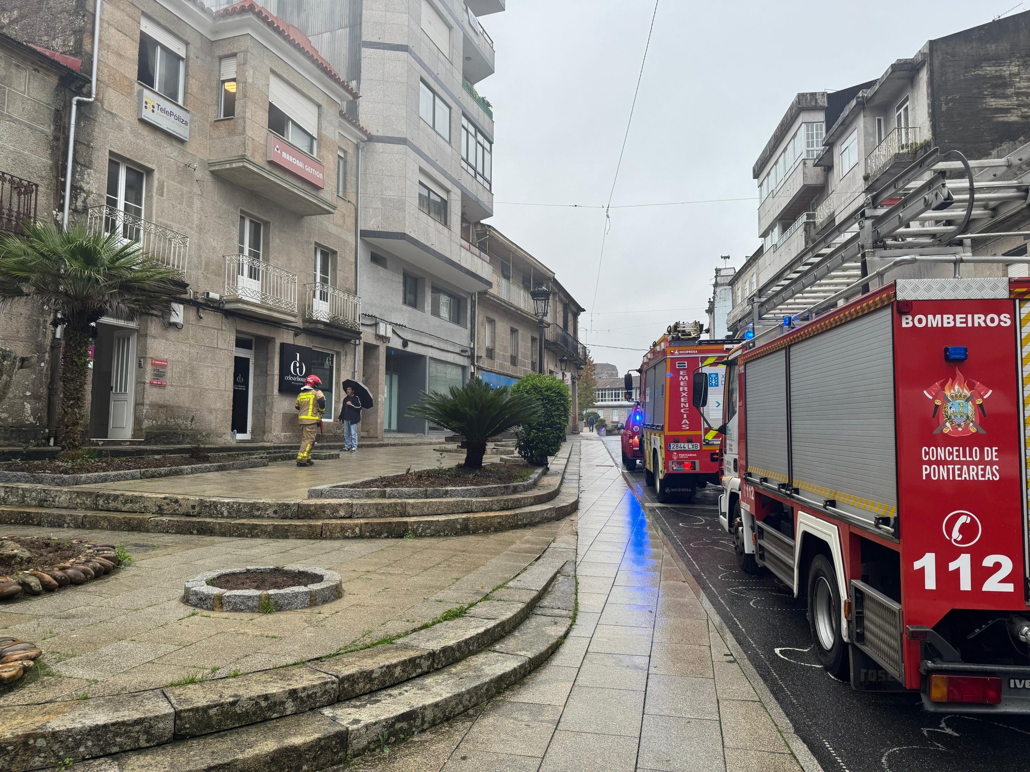 Así, los hechos tuvieron lugar sobre las 9:30 horas de este miércoles, cuando una llamada al 112 Galicia activaba la alerta por un incendio en una oficina de Ponteareas.