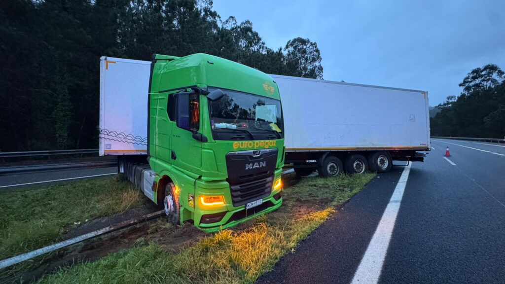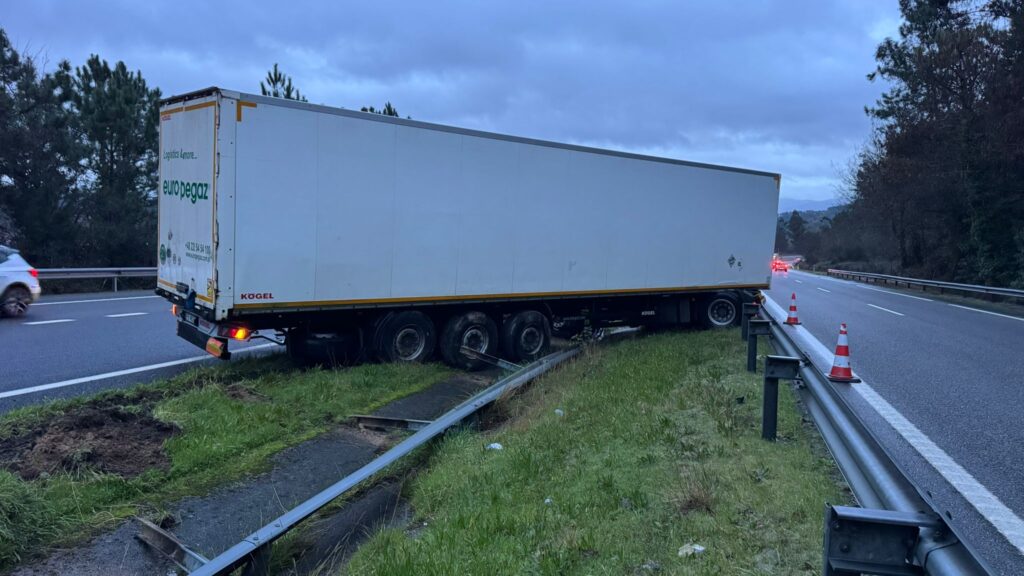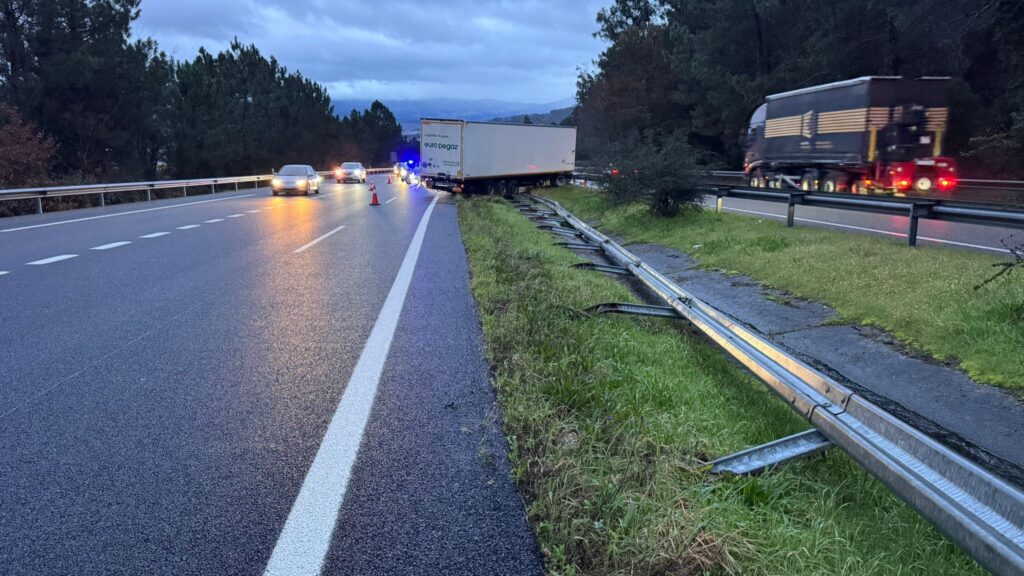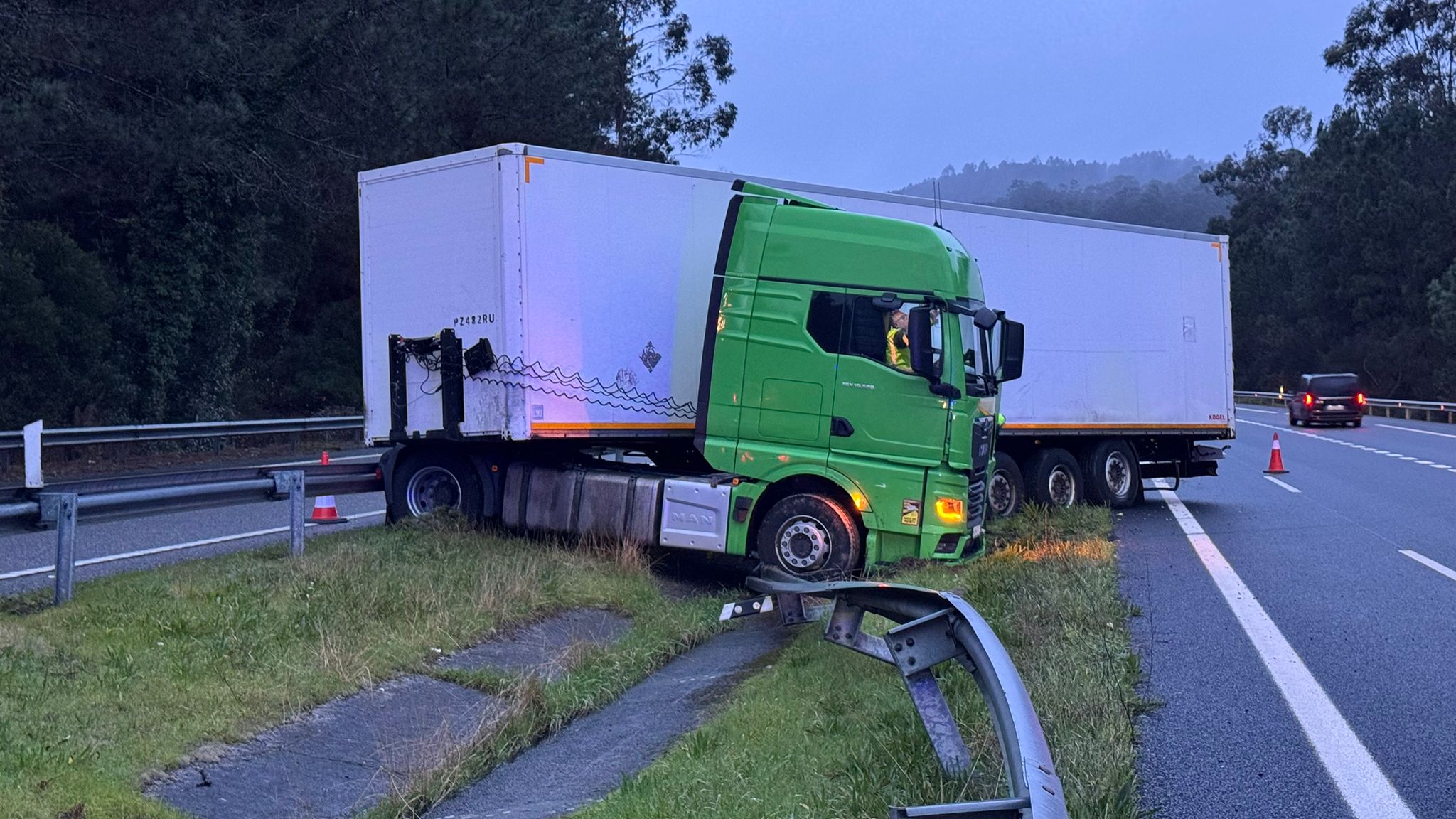 Sucedió a las seis y media de la mañana en el kilómetro 3, en la parroquia de Xinzo, en Ponteareas, cuando el camión, que circulaba en dirección Vigo, se salió de la vía por causas que, de momento, se desconocen.