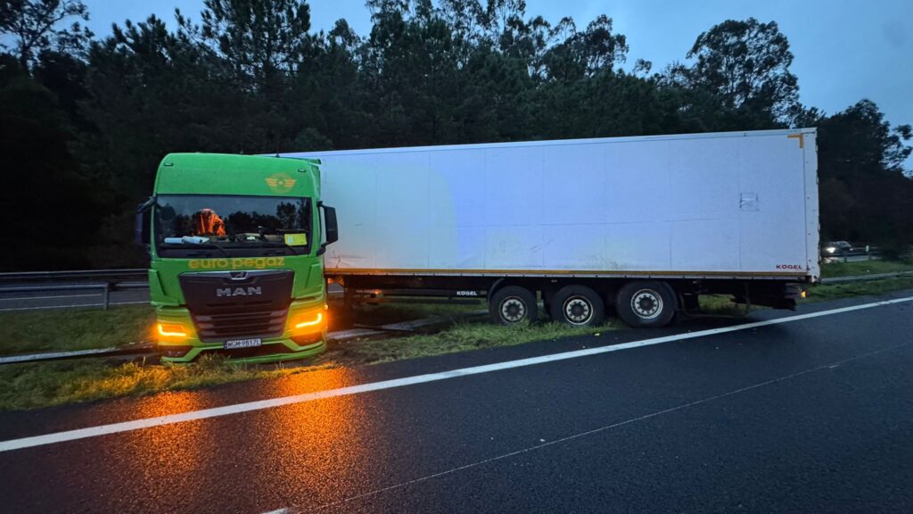 Parte de la caja de camión quedó atravesada parcialmente en uno de los carriles de la A-52 sentido Vigo, lo qie ha obligado a la Guardia Civl a señalizar la zona para evitar posibles siniestros.