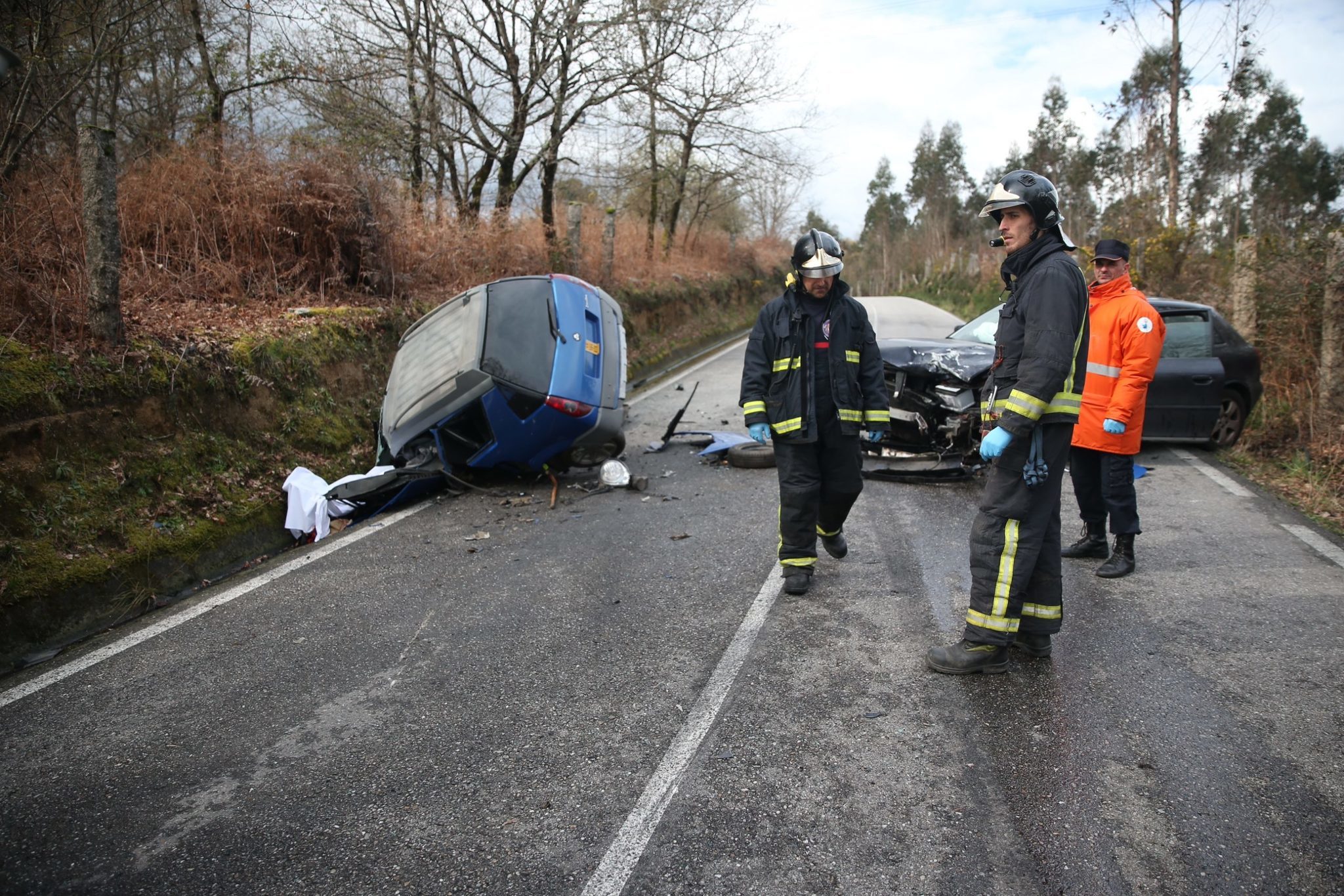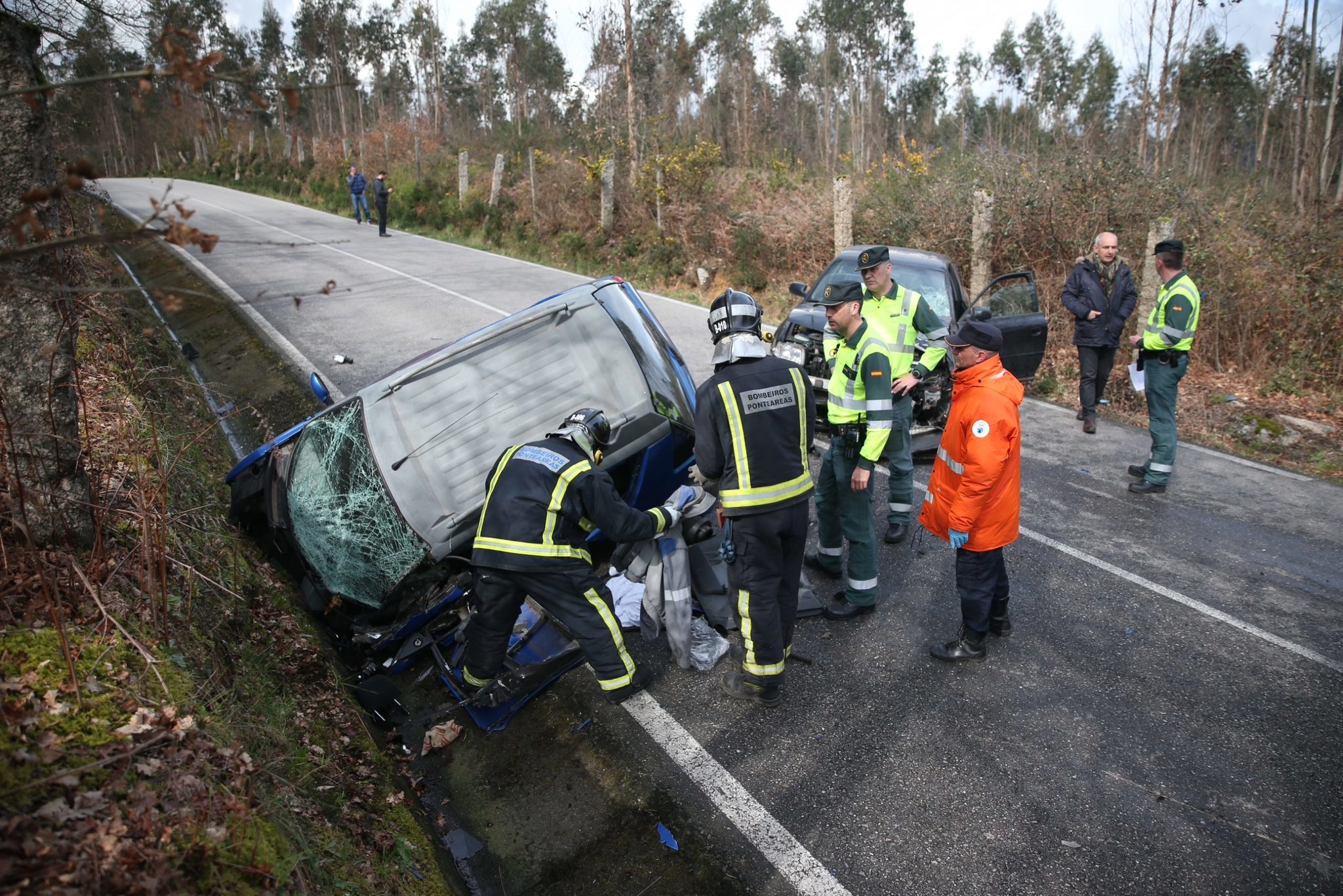 El suceso tuvo lugar en el punto kilométrico 11,800 de la carretera provincial EP-2703. Al lugar de los hechos se desplazaron los Bomberos de Ponteareas, Protección Civil, Urxencias Médicas y la Guardia Civil de Tráfico.
