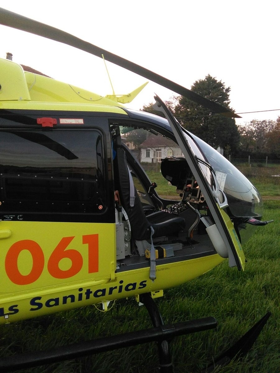 El 112 desplazó al helicóptero medicalizado del 061 con base en Ourense y aterrizó en el campo de fútbol de As Neves, pero los sanitarios solo pudieron certificar el fallecimiento.