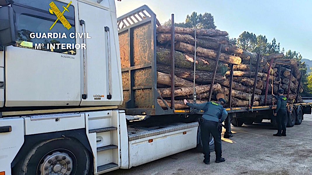 Los agentes deciden realizar una patrulla y observan cómo un camión con remolque abandona la zona boscosa cargado con troncos de árboles sin autorización, de modo que deciden seguirlo en una furgoneta.
