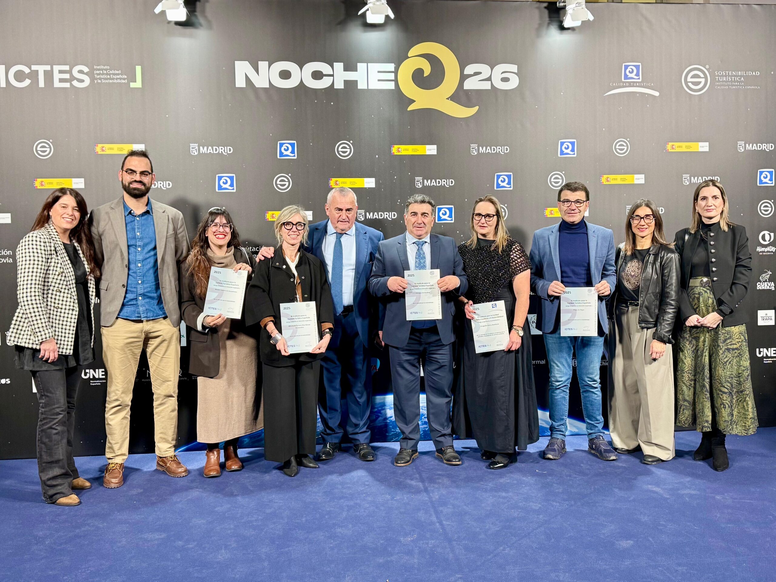 Por otra parte, el organismo provincial también recogió en Madrid los certificados Q de calidad turística de las oficinas y puntos de información turística que conforman la red provincial Info Rías Baixas y ya los habían conseguido: Palacete de las Mendoza, A Estrada, Sanxenxo (puerto deportivo), Cangas (Casa de A Bola), Cambados, Baiona, Poio (Casal de Ferreirós), Vilanova de Arousa (Mar de Santiago) y A Illa de Arousa. Además, dos más consiguieron el certificado: el punto de información turística de Nigrán -Dunas de Gaifar y la Oficina de Turismo de Bueu.