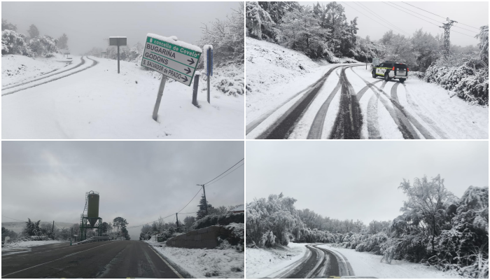 Según informa la Dirección General de Tráfico (DGT), los puntos más conflictivos para conducir se encuentra en las zonas altas de la provincia. Los municipios de A Cañiza y Covelo están cubiertos por un manto blanco y la circulación se complica.