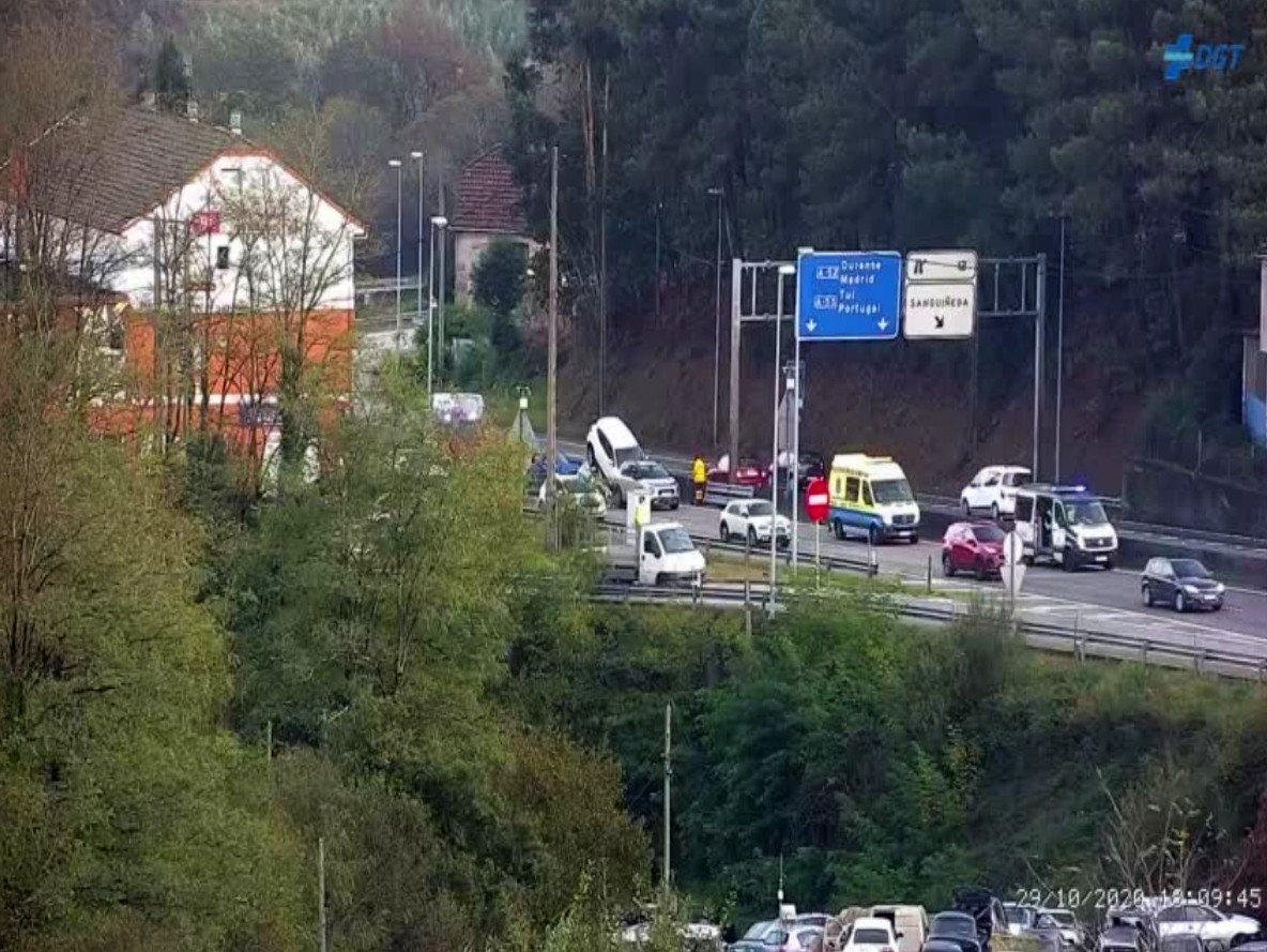 En el siniestro se vieron implicados cuatro automóviles y uno de ellos quedó montado sobre otro vehículo al recibir el impacto por su parte posterior y ser levantado literalmente. Las mismas fuentes señalan que los ocupantes estaban liberados y accesibles. Fueron alertados Urgencias Sanitarias, Guardia Civil de Tráfico, Policía Local, Bombeiros de Porriño, Emerxencias de Mos y mantenimiento de carreteras.