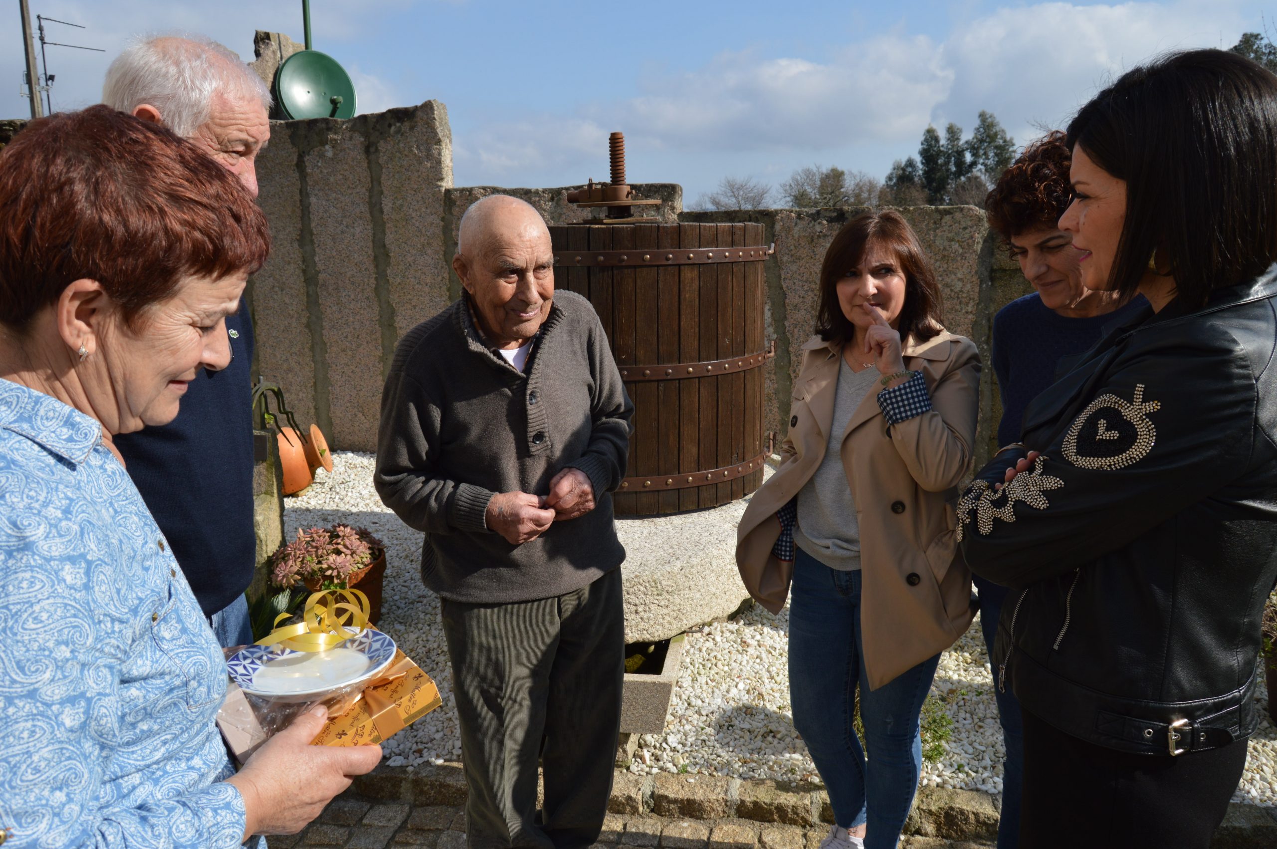 José, no centro da imaxe, recibiu a visita da alcaldesa (d.). / Foto: Concello de Mos