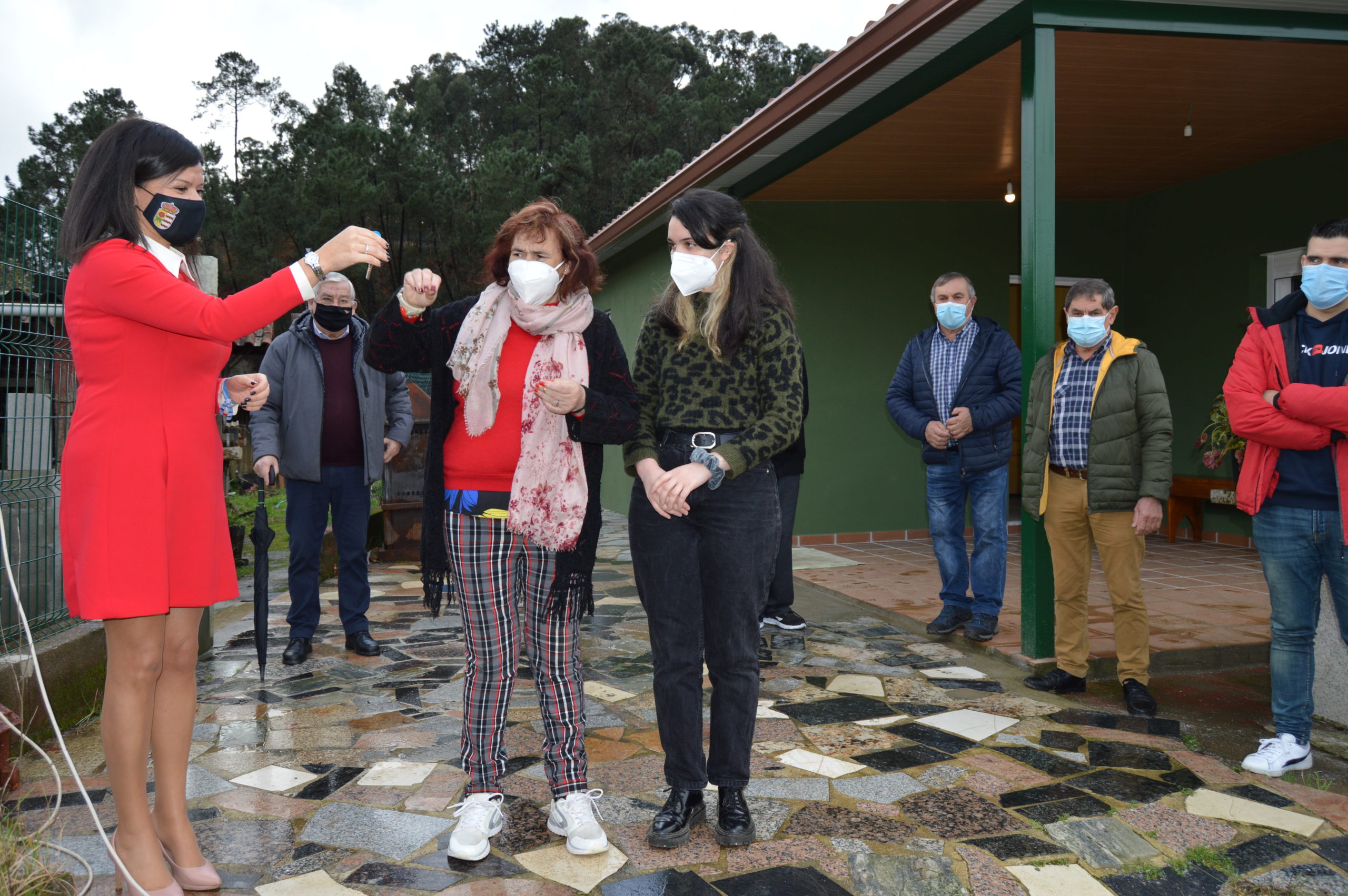 Arévalo visitou a casa xunto co presidente da Comunidade de Montes de Pereiras, Jorge Lorenzo, membros de Cáritas Pereiras-Petelos, e o veciño da zona e membro da Asociación de Veciños Nosa Terra de Pereiras, que fixo as veces de albanel encargado da obra, Raimundo Pérez Rodríguez, para entregarlle as chaves á propietaria da casa, Rosa Groba.
