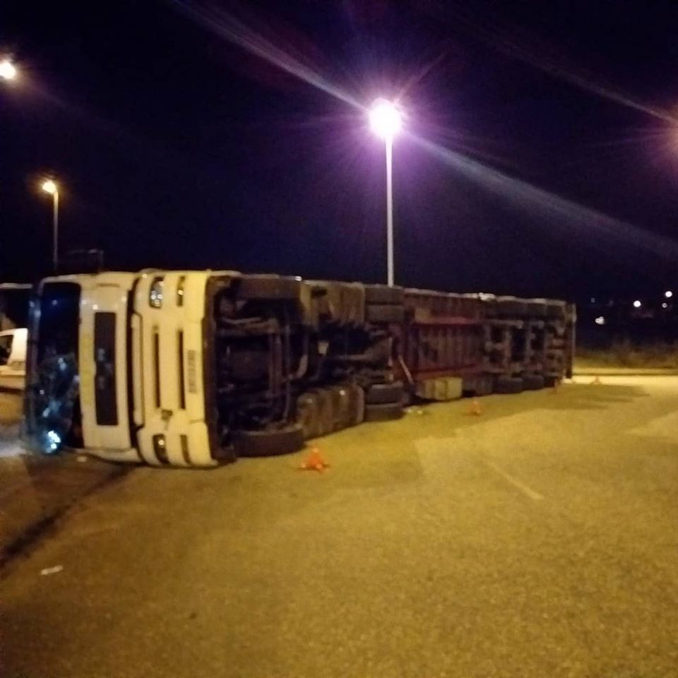 El conductor de un tráiler que transportaba piezas para la automoción tuvo que ser trasladado en ambulancia a Vigo esta pasada noche para ser atendido de las lesiones sufridas después de que el camión en el que viajaba volcara lateralmente en Mos.