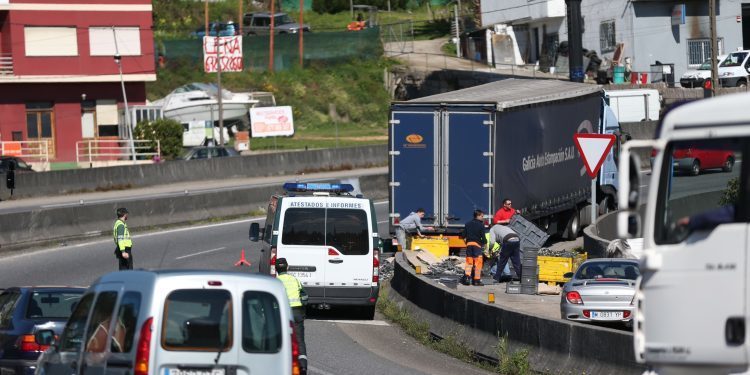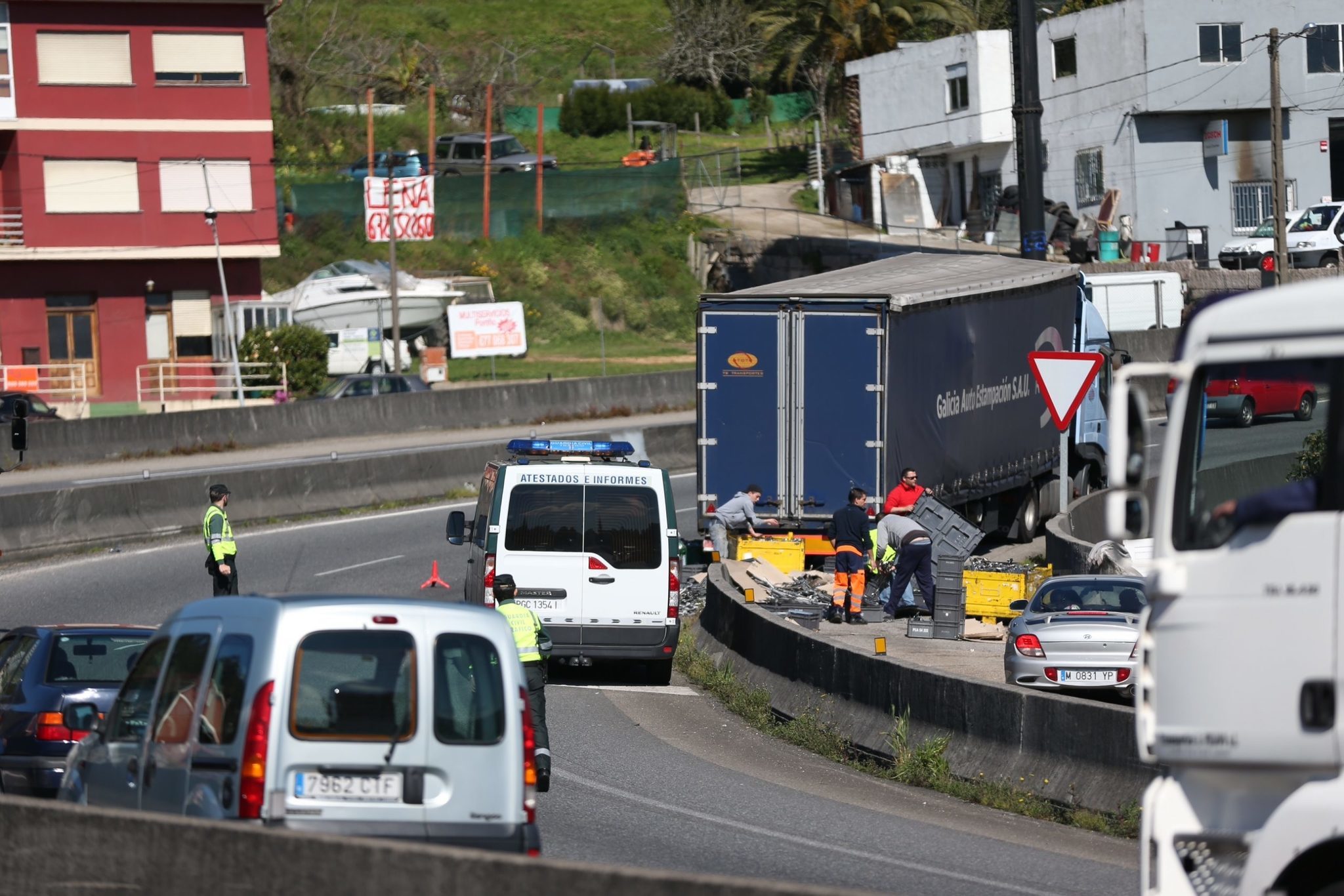 La autovía A55 registró este miércoles importantes retenciones debido a la caída sobre la calzada de parte de la carga de un camión. El incidente ocurrió poco después de las once y media de la mañana cuando el vehículo pesado perdió la carga a la altura de Tameiga, en sentido Vigo.