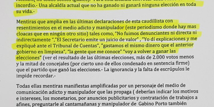 Tamén se denuncian descualificacións contra outros membros do Goberno local, coma o responsable do Urbanismo, Marcelino Coto, ou á concelleira de Educación, Lourdes Moure, á que define nunha das súas alegacións coma “inepta, necia ou indocumentada”, e da que afirma que non sabe ler.