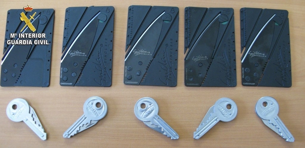 «Tanto las tarjetas como las llaves navaja están consideradas como armas blancas prohibidas según los últimos informes emitidos al respecto por la Intervención Central de Armas y Explosivos, por considerar que su tenencia supone un riesgo evidente para la integridad física de las personas», señala la Comandancia en un comunicado.