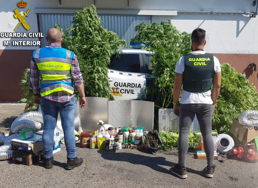 Al inspeccionar la finca se localizó un terreno habilitado para el cultivo donde se incautaron 25 plantas de marihuana de gran tamaño. En un alpendre anexo, los agentes se encontraron con una plantación “indoor” dotada de toda la infraestructura necesaria para este tipo de cultivo en sus diferentes fases de crecimiento, provisto de un sofisticado sistema de riego, ventilación, iluminación, control de temperatura y humedad, que aceleraba el crecimiento y reproducción de las plantas.