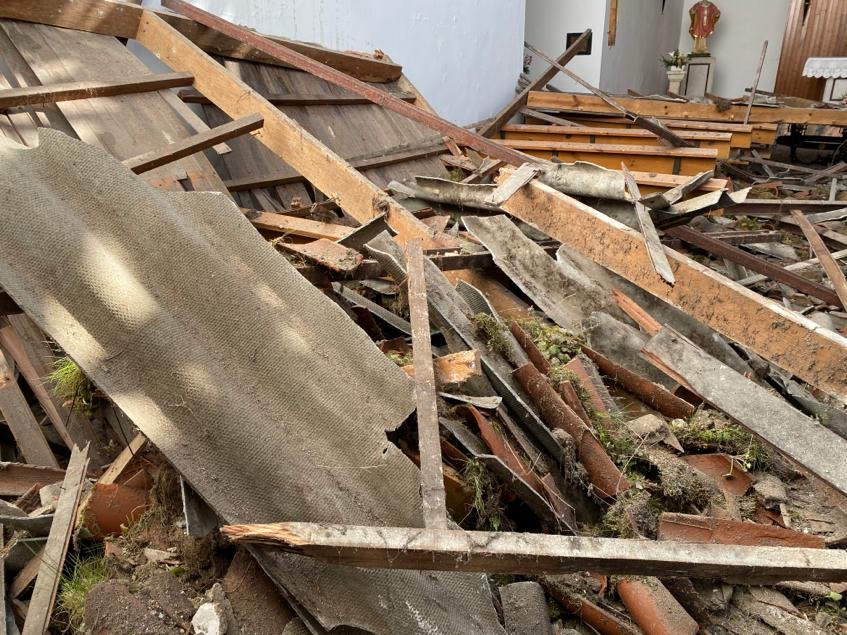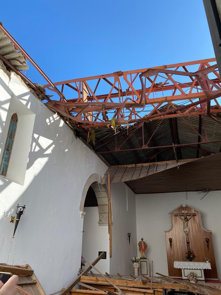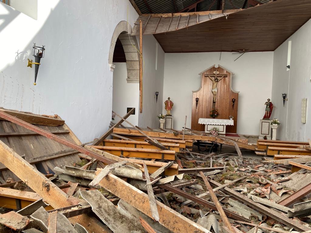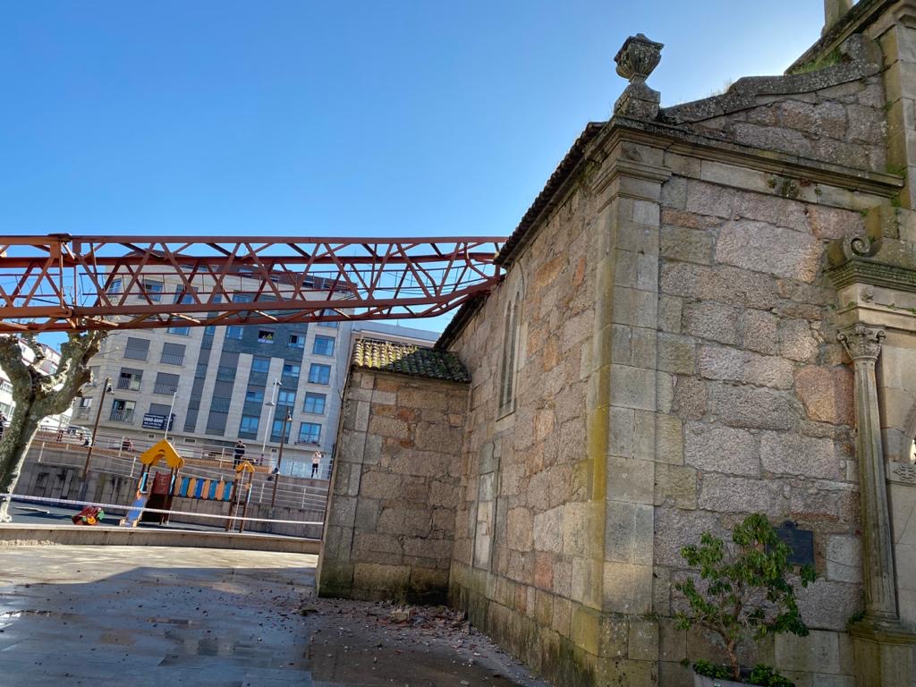 Una grúa de obra ha dado un buen susto a los vecinos de O Porriño después de venirse abajo este martes por la mañana y caer sobre la capilla del Cristo. Por fortuna, no ha habido que lamentar heridos pero sí importantes daños, sobre todo en el tejado.
