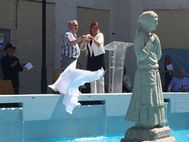 Con esta escultura quérese homenaxear a figura de María Soliña, que se ten convertido nun símbolo de sufrimento do pobo, especialmente das mulleres perseguidas. “Parabéns ao pobo de Cangas porque xa ten de volta á súa veciña María Soliña”, manifestou a presidenta, referíndose así á ausencia de datos sobre a súa defunción e enterramento.