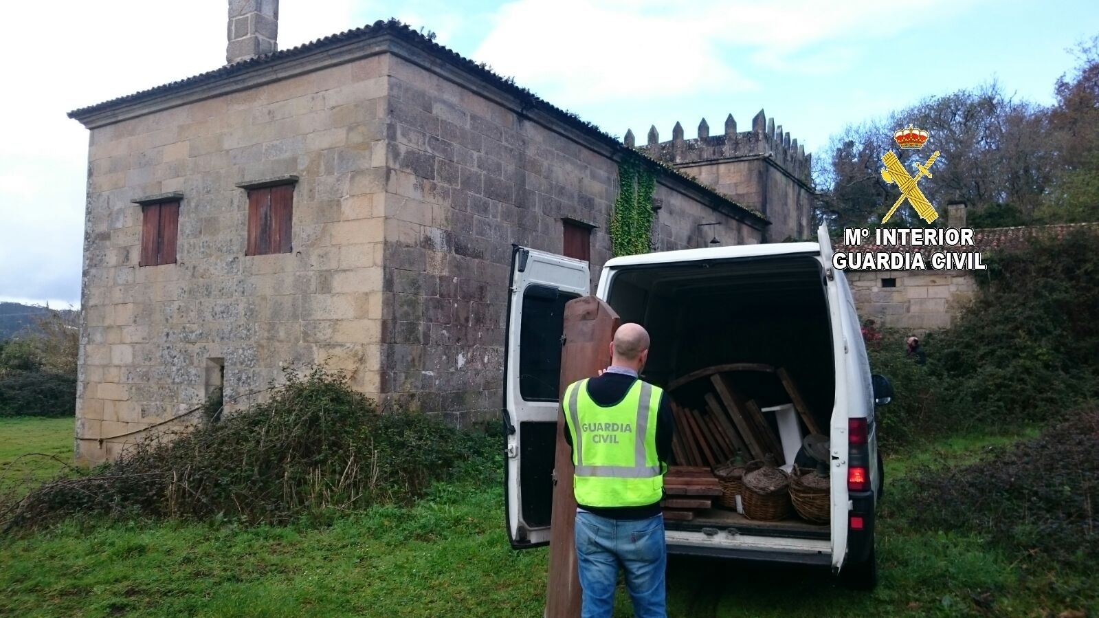 Los hechos sucedieron cuando componentes del Puesto Principal de la Guardia Civil de Cangas tuvieron conocimiento de que en las redes sociales se estaban ofertando diversos objetos procedentes de un pazo y que pudieran ser originarios del de Aldán, en la actualidad deshabitado.