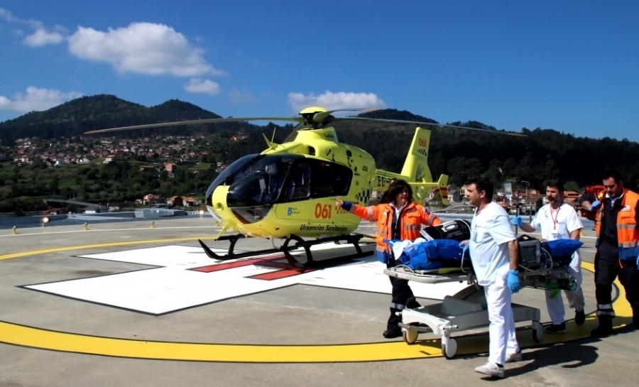 Los efectivos sanitarios decidieron movilizar hasta el lugar del accidente el helicóptero medicalizado con base en Santiago. El hombre fue trasladado en la aeronave al Hospital Álvaro Cunqueiro de Vigo.