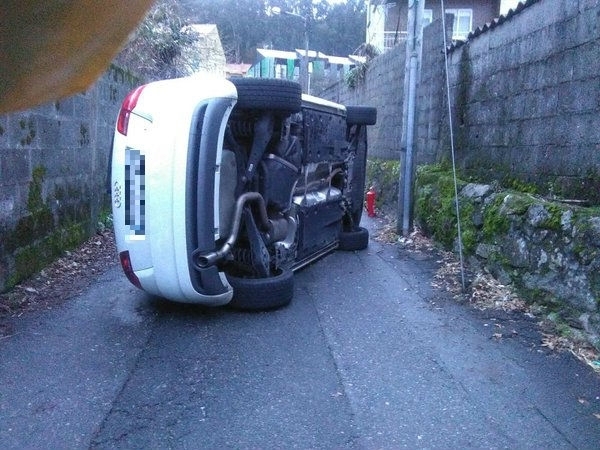 El accidente se registró la tarde de este lunes cuando un turismo, marca Audi, entró en la rúa da Choupana, un estrecho callejón que da acceso al barrio, y se enganchó con el cable de un poste eléctrico situado al borde del camino. El vehículo volcó y quedó de medio lado en mitad de la calle, aunque tanto la conductora como los dos niños que viajaban a bordo no sufrieron lesiones de importancia.