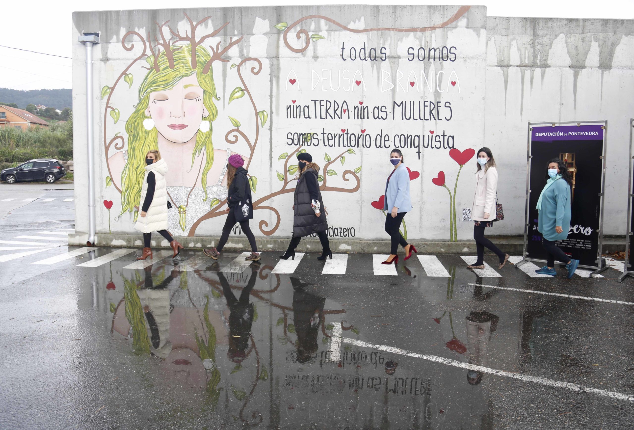 Pola súa banda a alcaldesa de Moaña, Leticia Santos, agradeceu a escolla de Moaña para unha nova acción artística do programa “Mulleres en acción. Violencia Zero” . A alcaldesa fixo fincapé