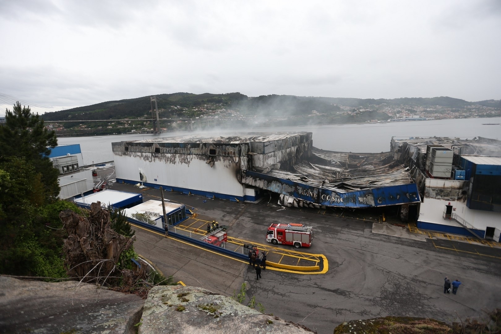 O 112 informou de que aínda que, a situación está controlada, os servizos de emerxencia continuarán traballando arreo ata lograr a súa completa extinción. A Xunta de Galicia desactivou este martes o Plan de Emerxencias de Galicia (Platerga), no seu nivel 1, e, o Plan de Contaminación Marina de Galicia (Camgal) en fase de alerta que, dende onte permanecían activados ante a posibilidade de producirse algunha fuga dos materiais cos que se traballaba na nave.