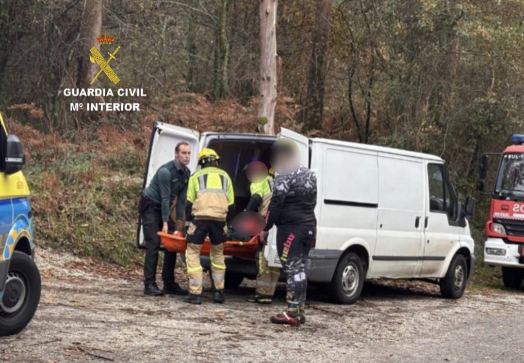 Según las mismas fuentes, los integrantes del equipo de rescate se desplazaron al lugar los medios caminando unos dos kilómetros hasta el herido, que posteriormente fue trasladado en camilla hasta la ambulancia, y luego al hospital Álvaro Cunqueiro de Vigo, en estado grave.