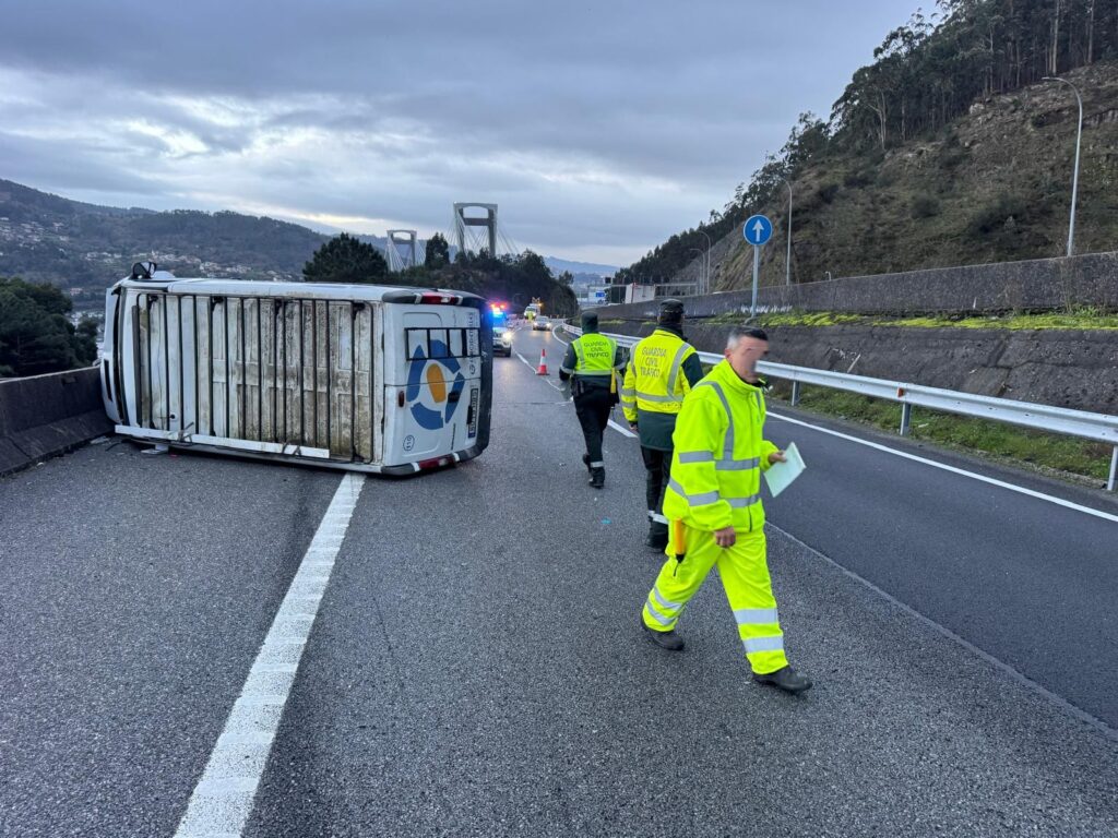 Según informa el 112 Galicia, los hechos sucedieron sobre las 07:55 horas a la altura del kilómetro 148 de la autopista, a la salida del puente de Rande y en dirección Pontevedra, en el término municipal de Vilaboa.