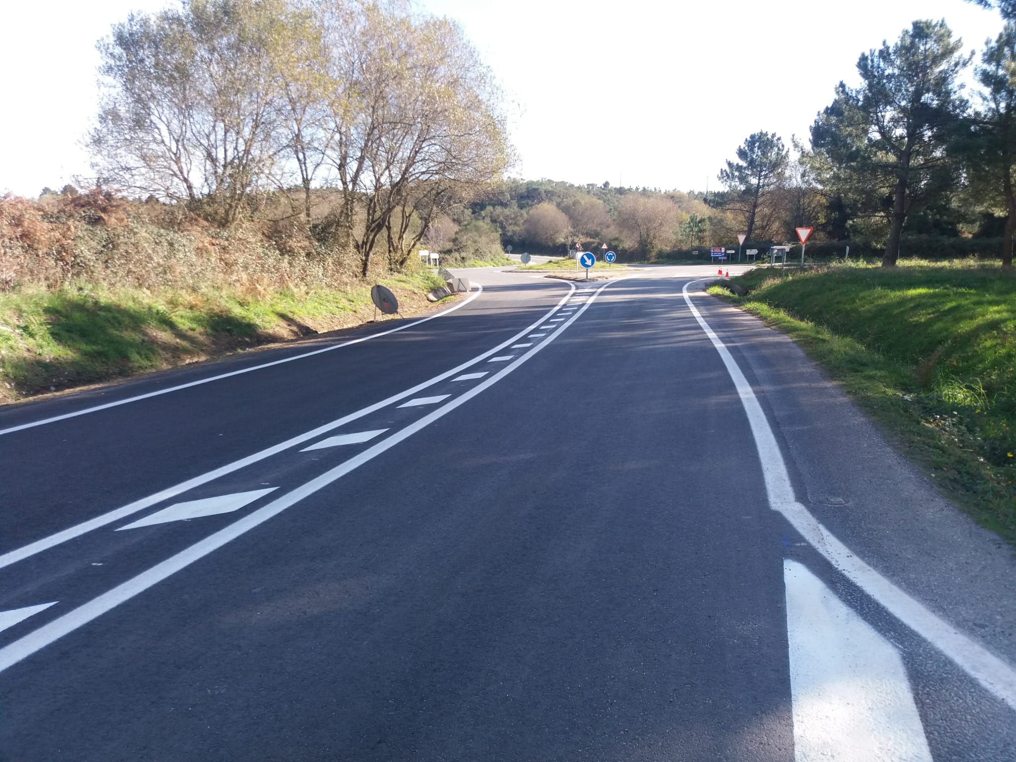 As obras consistiron no fresado e reposición do firme da calzada entre a saída da autovía A-52 e a rotonda situada no punto quilométrico 1+100 para dotala dun novo pavimento de 6 centímetros de grosor que pon fin a tódalas deficiencias anteriores. Sen embargo, a principal actuación foi a ordenación e urbanización dos sobreanchos existentes a ambos lados do campo de fútbol e o cemiterio, espazos que ata o de agora utilizábanse como aparcamento libre, o que supuña un perigo para os peóns. Con estas obras creáronse itinerarios peonís de 0,50 metros de anchura, marcados con separadores de carril dende as novas bandas de aparcamento en liña de 2,5 metros de ancho. A carón do cemiterio, a nova beirarrúa está executada en formigón e na fronte do campo de fútbol fíxose en aglomerado. As obras respectaron as árbores e os alcorques ornamentais existentes.