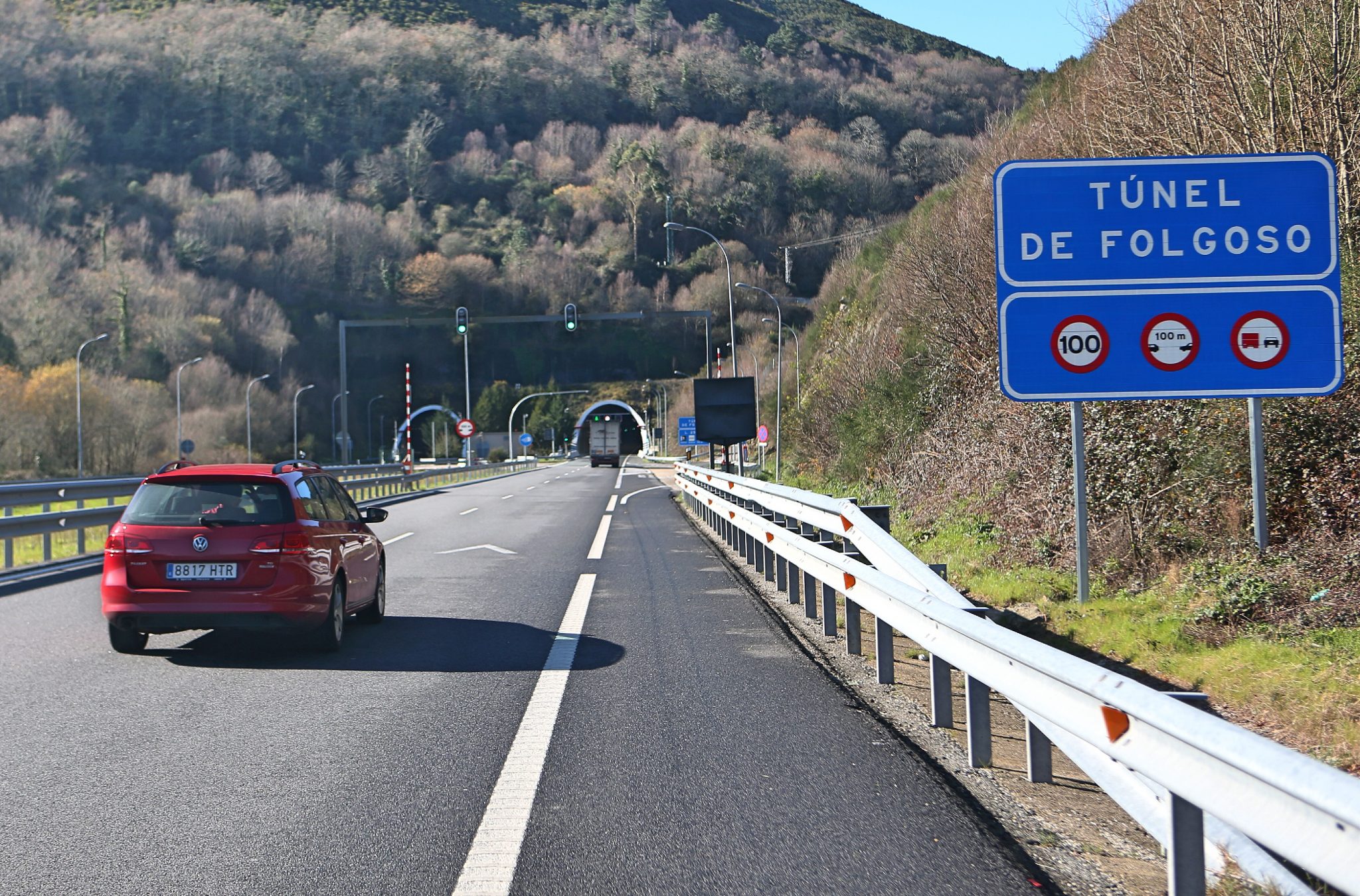Una mujer tuvo que ser excarcelada por los Bomberos tras quedar atrapada entre el cinturón de seguridad y la puerta tras la colisión del vehículo en el que viajaba con otro, a la salida del túnel de Folgoso, en la A-52.